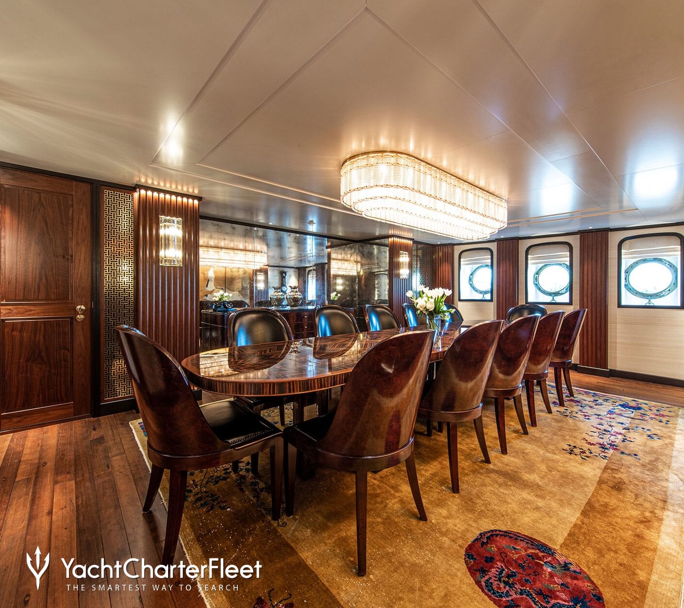 Offering an air-conditioned haven, the interiors on board motor yacht charter MARALA are extensively adorned with rich woods and deep hues that are reminiscent of the opulence in traditional yachting.