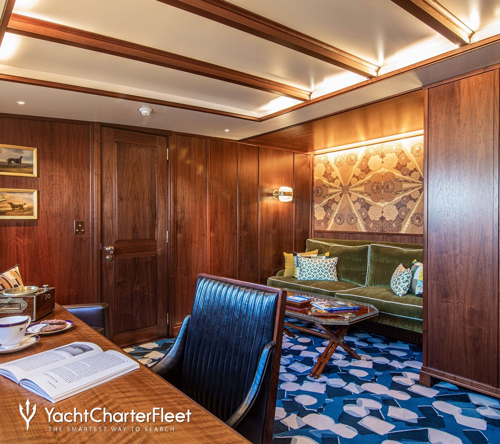 Cosy, inviting, and laden with insightful nods to the history of the superyacht, the social areas sport ample seating arrangements to suit all moods, with a formal dining area and an aesthetically pleasing study finishing off the ensemble.