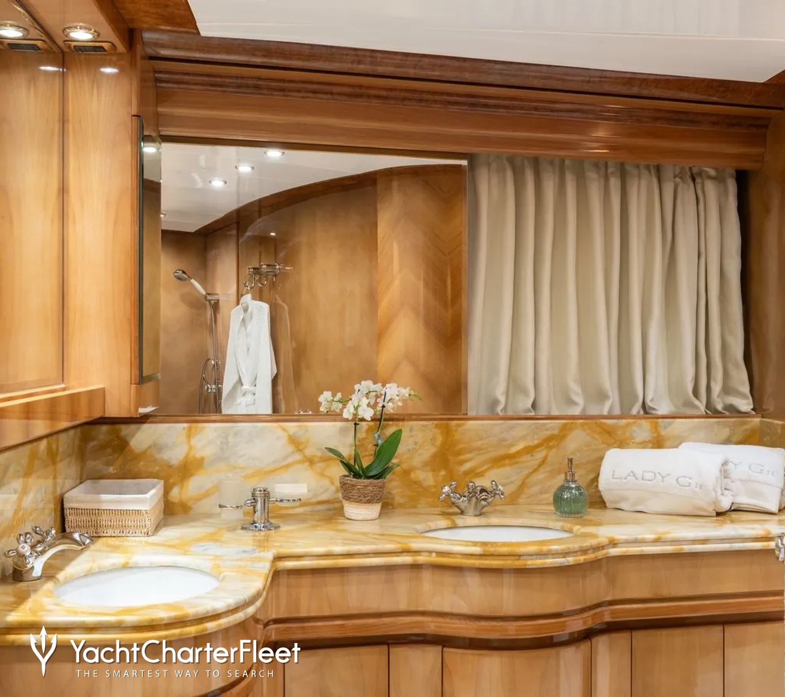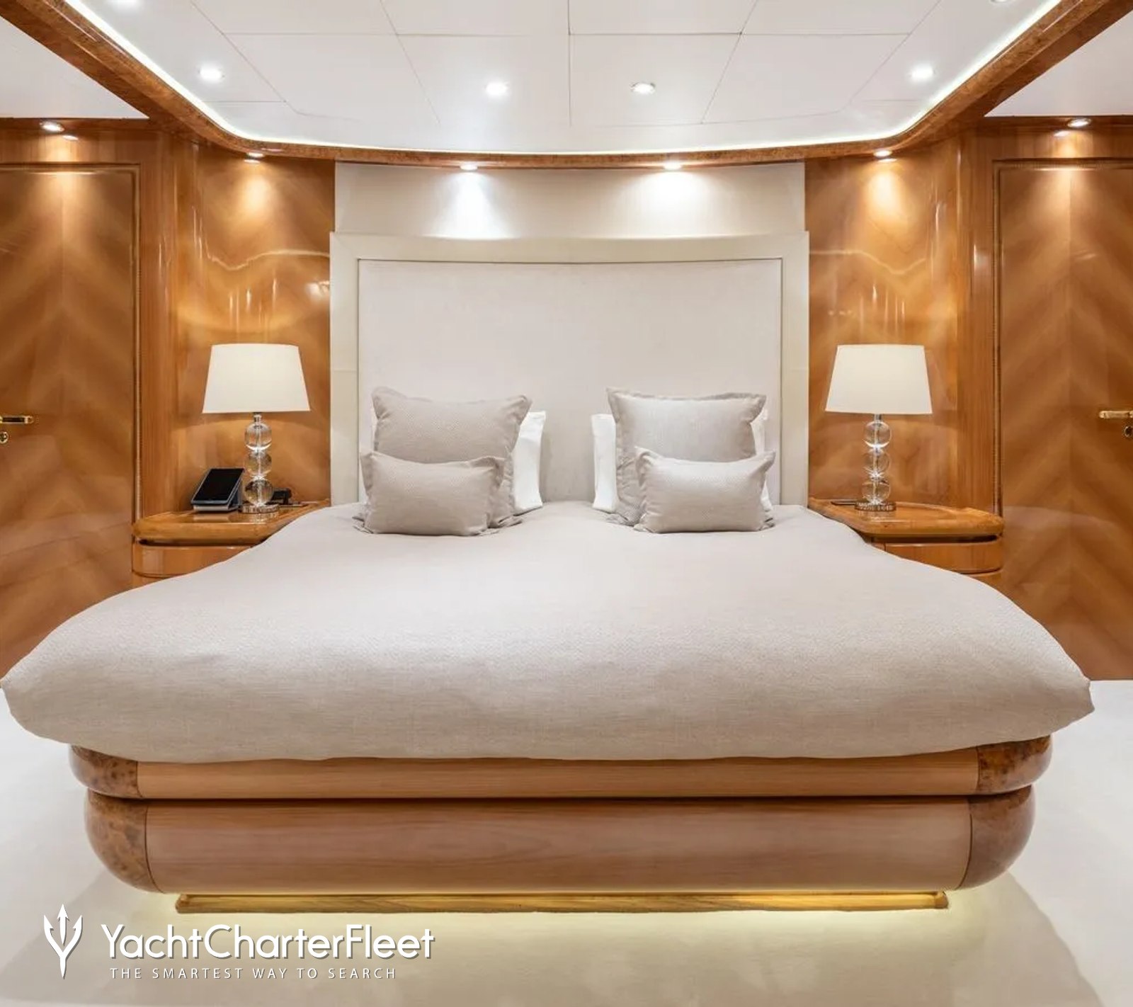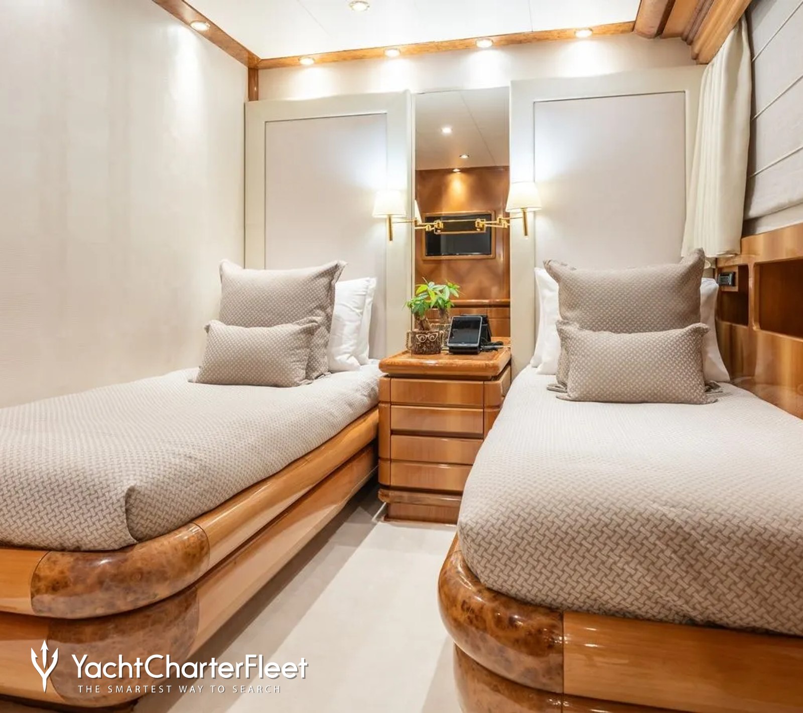 Accommodating up to 10 charter guests across five cabins, including a spacious full-beam master suite, two VIP cabins, and two twin cabins, yacht rental LADY G II has an arrangement that works particularly well for families or groups traveling together, offering both flexibility and privacy throughout the charter.