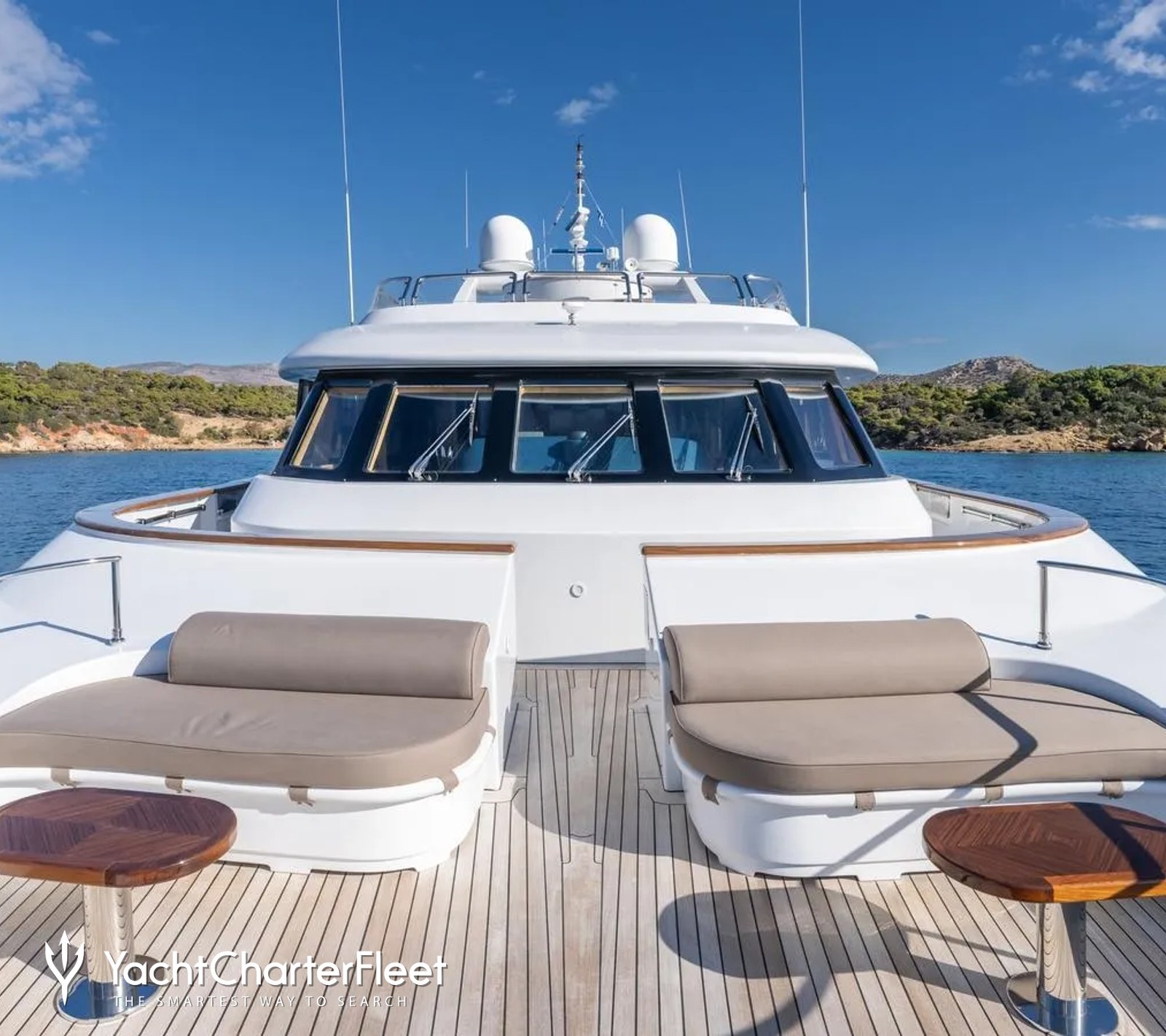 The sundeck offers a comfortable environment for daytime lounging, complete with sunpads and a deck Jacuzzi positioned to take advantage of sea views while at anchor. Multiple exterior seating areas allow guests to gather for alfresco dining or casual drinks, while shaded sections of the deck provide welcome relief during the warm Mediterranean afternoons.