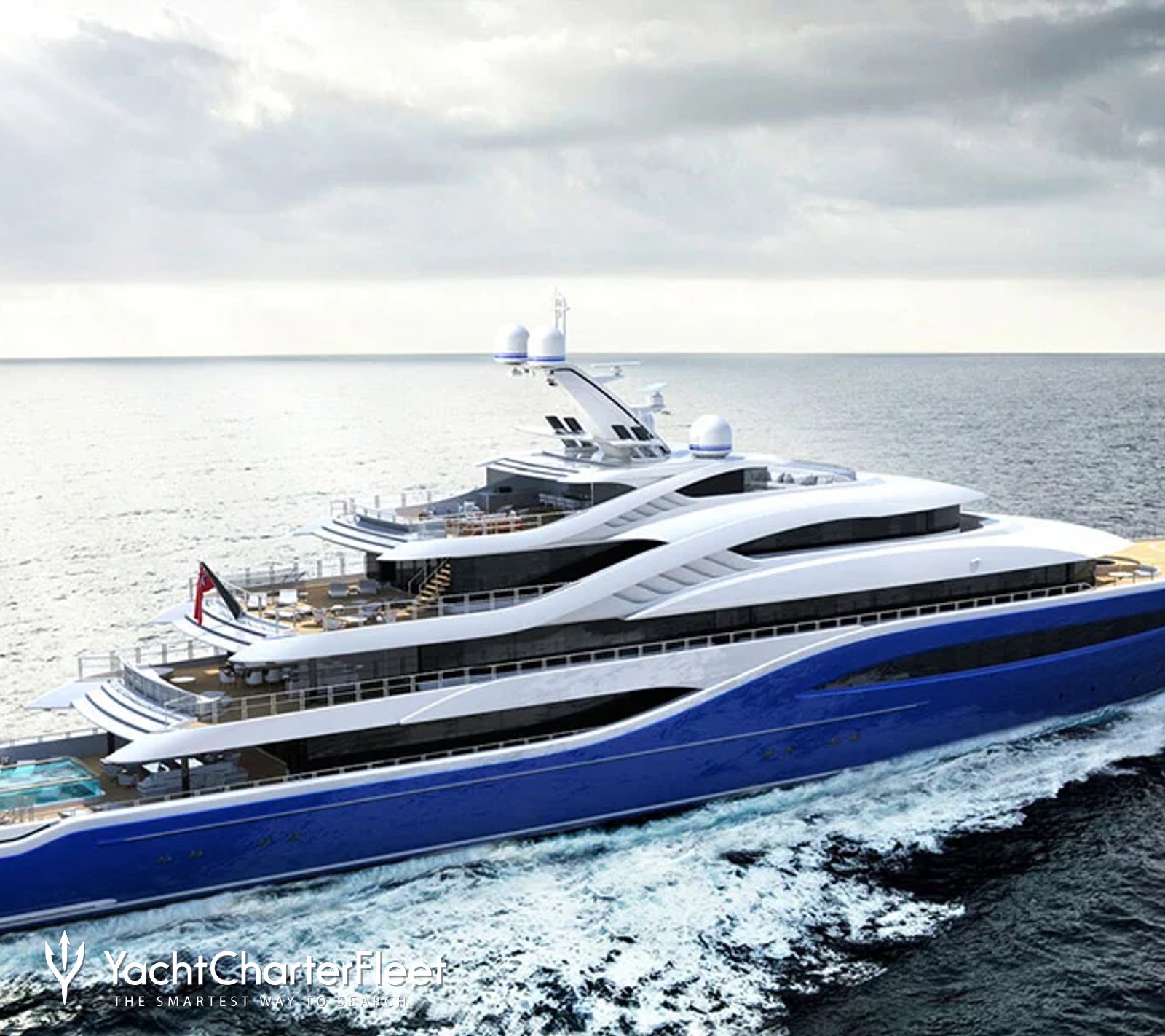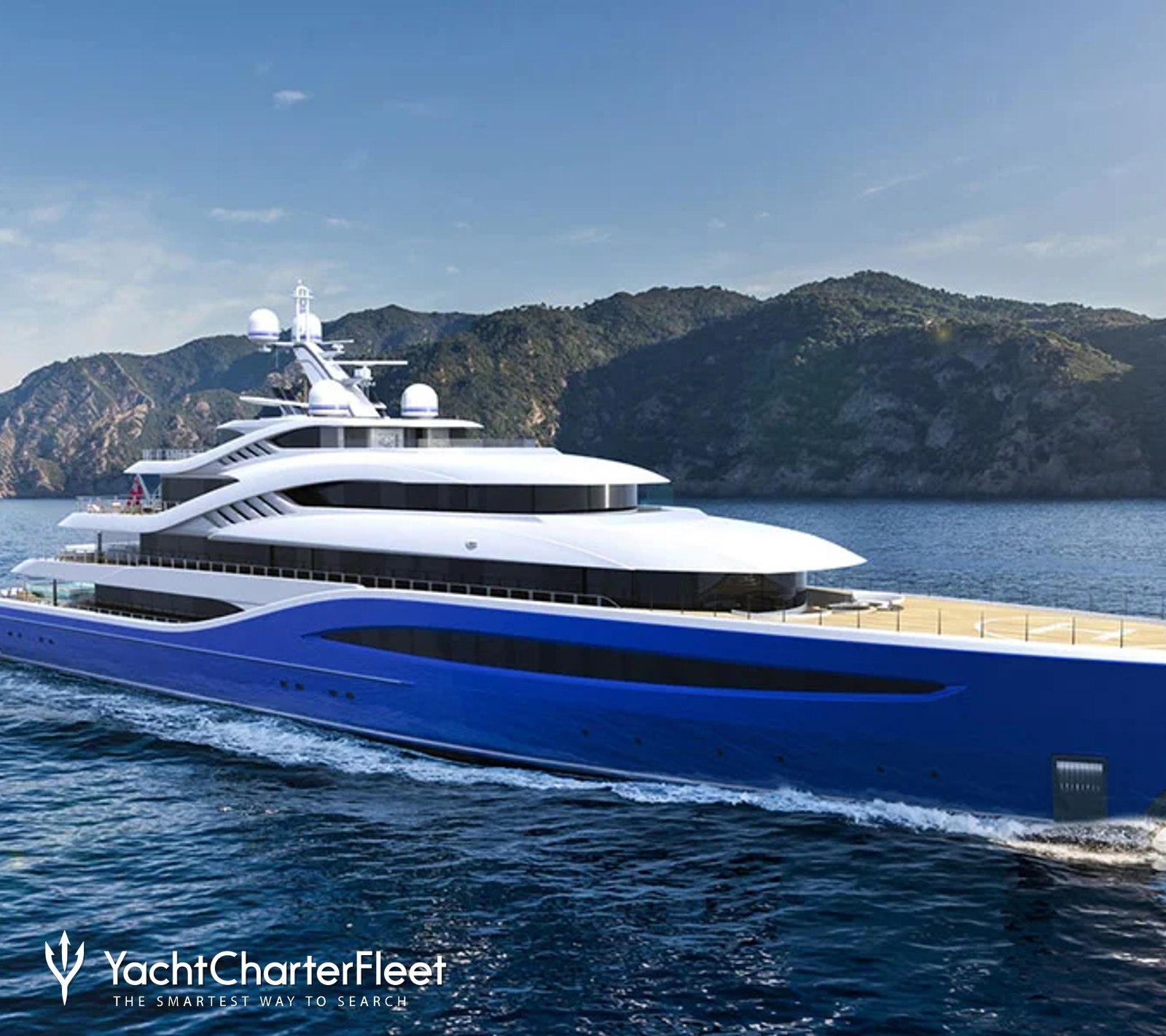 With her powerful silhouette, classic bow, and distinctive Tour de France blue hull, 285.5ft (87m) superyacht charter Project VENTO is poised to command attention the moment she appears on the horizon. Exterior styling and interior design are both by H2 Yacht Design, extending a longstanding creative partnership with Turquoise Yachts that has produced some of the shipyard’s most celebrated builds.