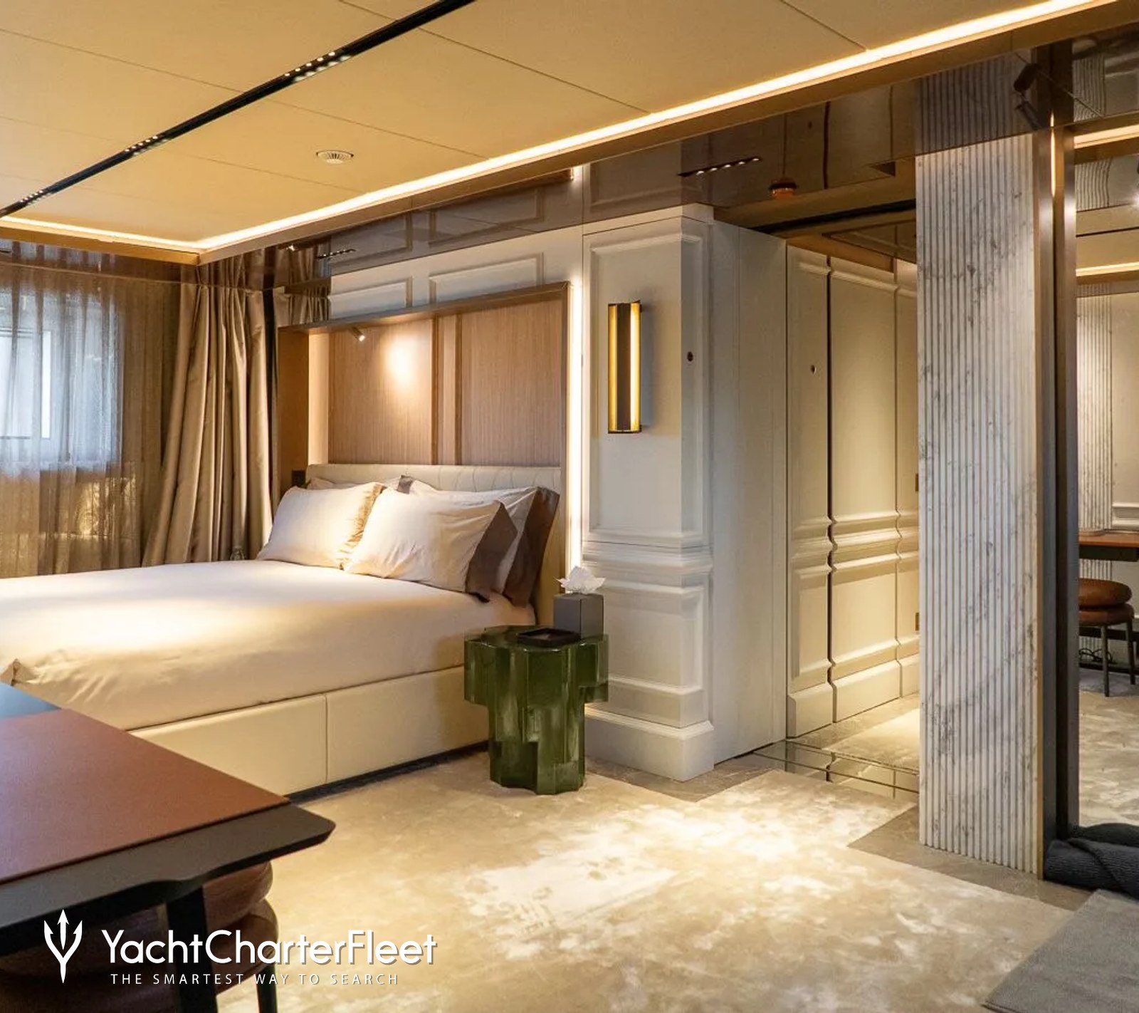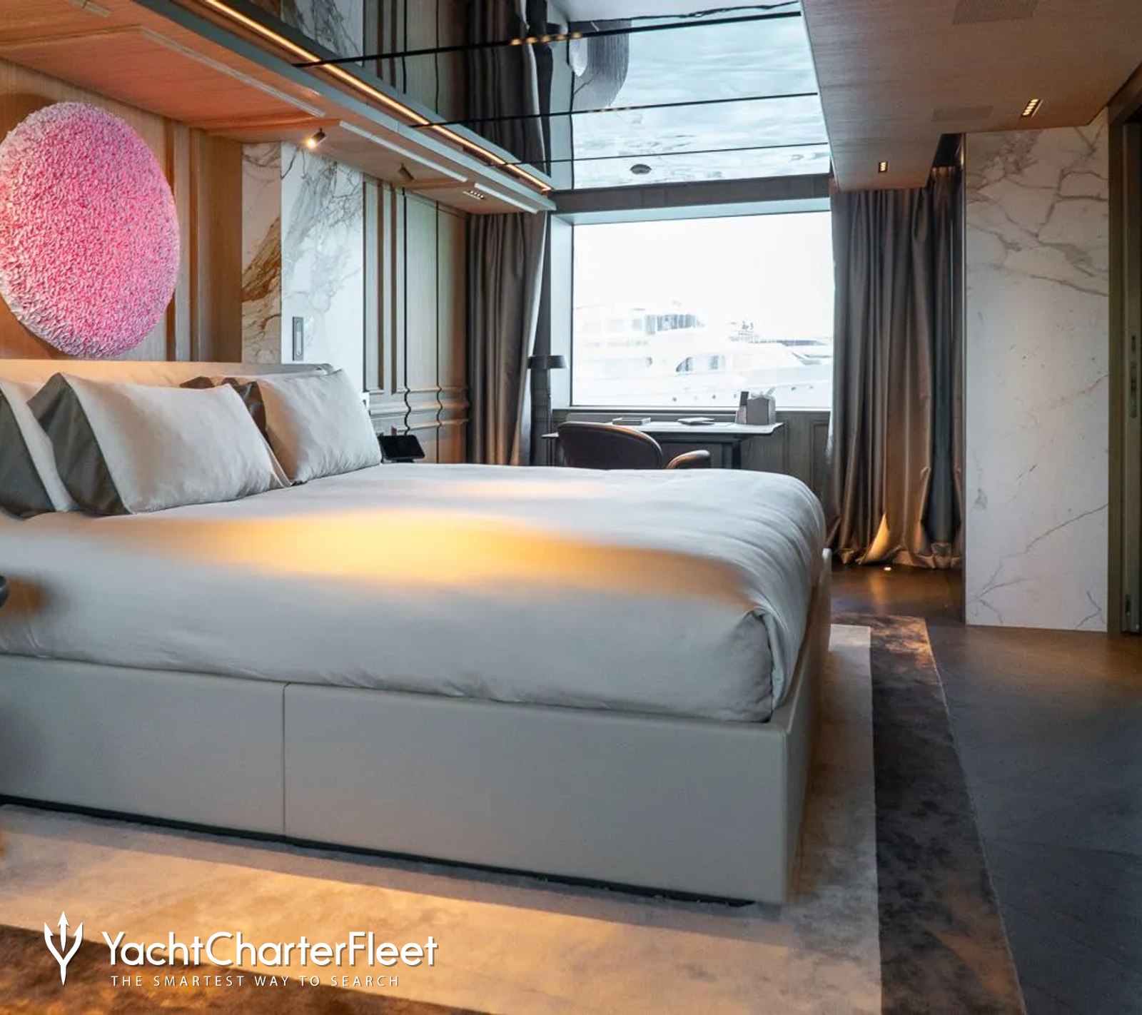 Situated on the main deck, the full-beam master is a key feature on its own, with plenty of floorspace, large windows for exclusive views, seating, and an indulgent ensuite.