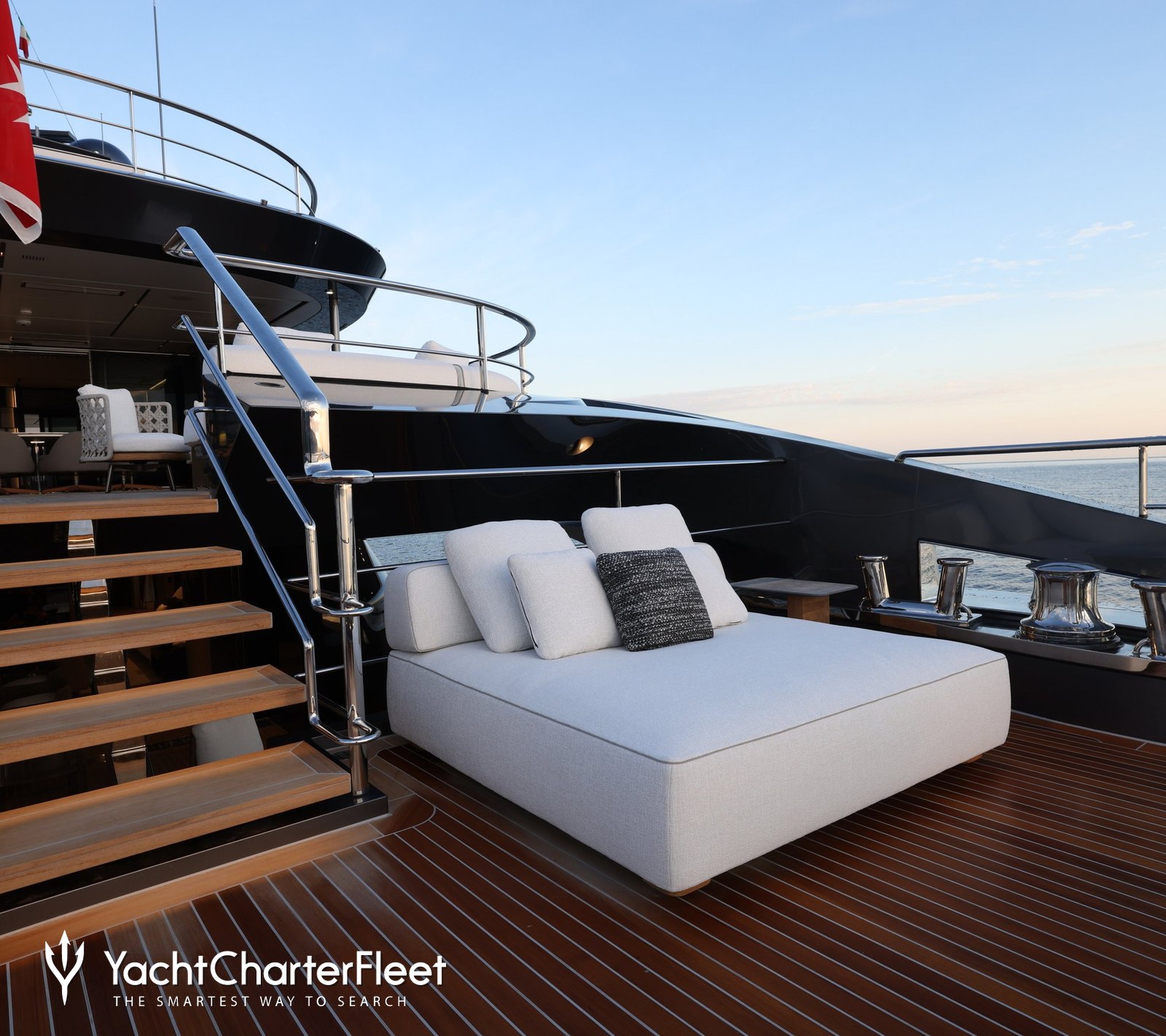 Sporting an impressive range for island-hopping itineraries, BEL1 operates on the Mediterranean yacht charter circuit and is more than ready to make the most of the warm climate with her extensive exterior deck space, dedicated sunbathing and dining areas, plus open-air lounges for relaxed afternoons onboard.