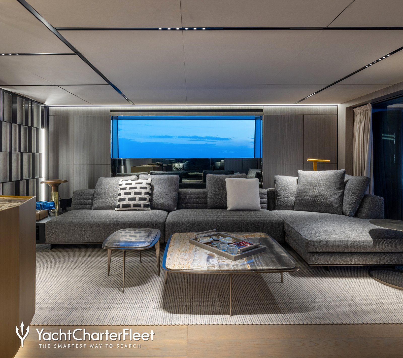 Pairing up the exteriors by Fulvio de Simoni with sophisticated Enrico Gobbi interiors, the indoor environment of yacht rental BEL1 is an air-conditioned haven with an open-plan layout that makes her more than suitable for extended West Mediterranean yacht charters.