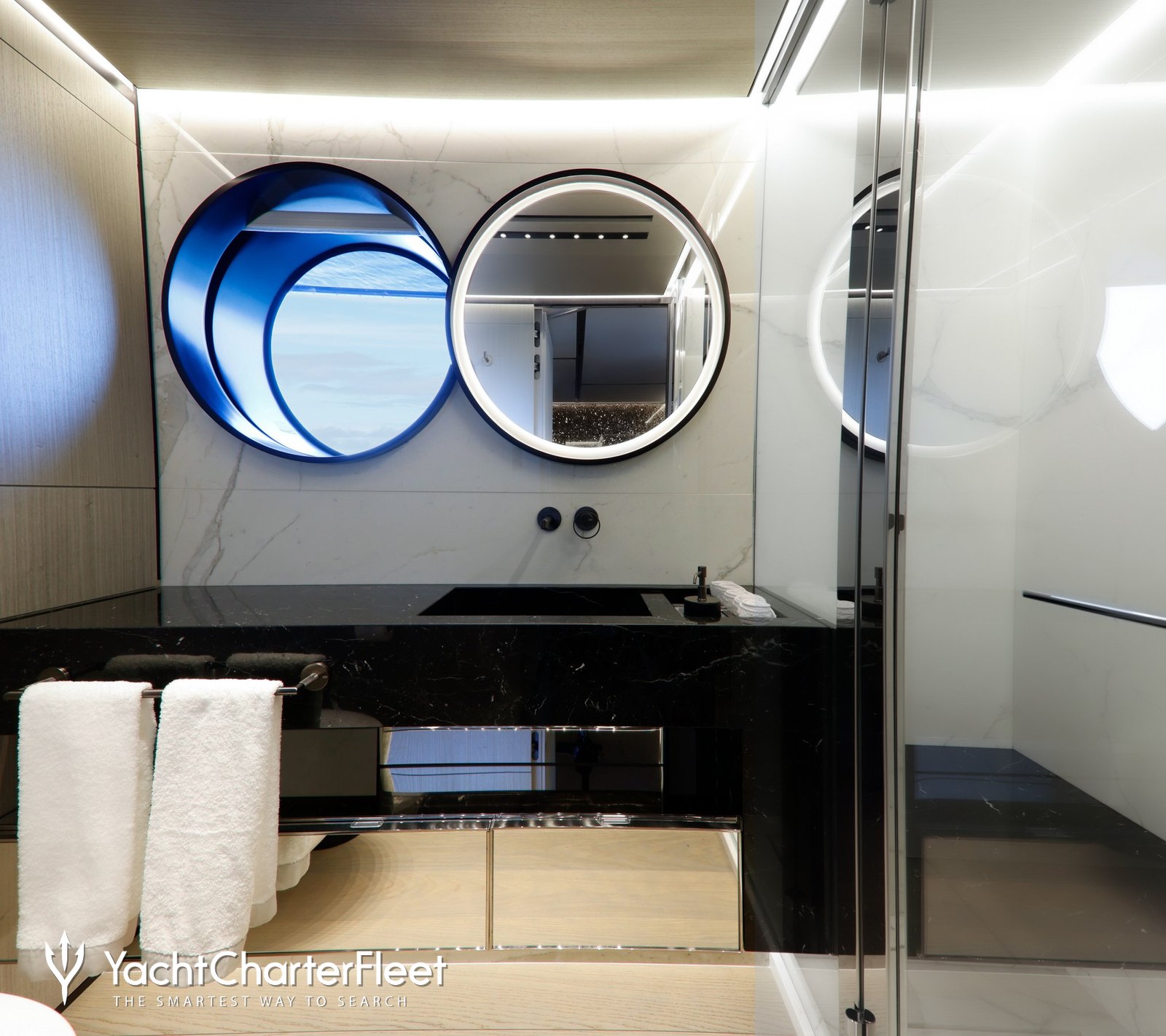 Comprising a five-cabin layout, charter yacht BEL1 features a spacious master cabin, a VIP, two double cabins, and a twin that welcome a range of charter groups. Each cabin has its own en suite and exclusive views.