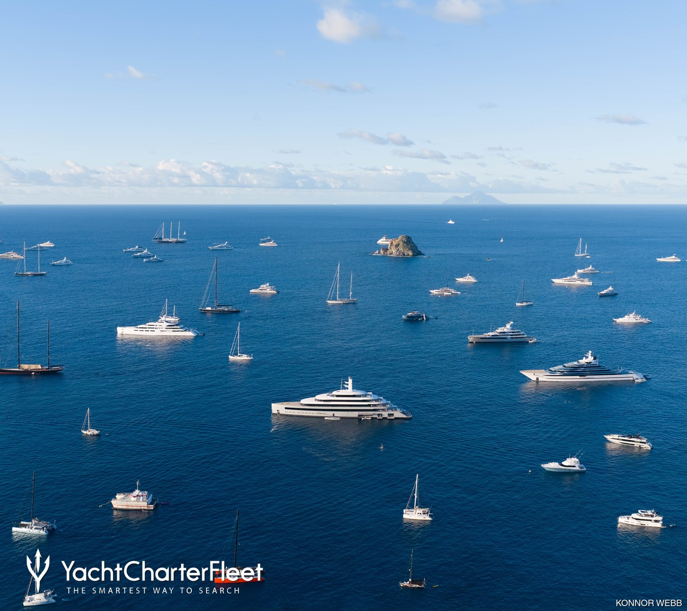 Completely smashing last year's attending fleet of 170 superyachts (including 118 charter yachts with an average length of 178.54ft (54.42m)), the charter routes of St Barts welcomed no less than 226 superyachts over 78ft (24m) this year, hosting an eyebrow-raising display of 155 luxury yacht charters in the mix.