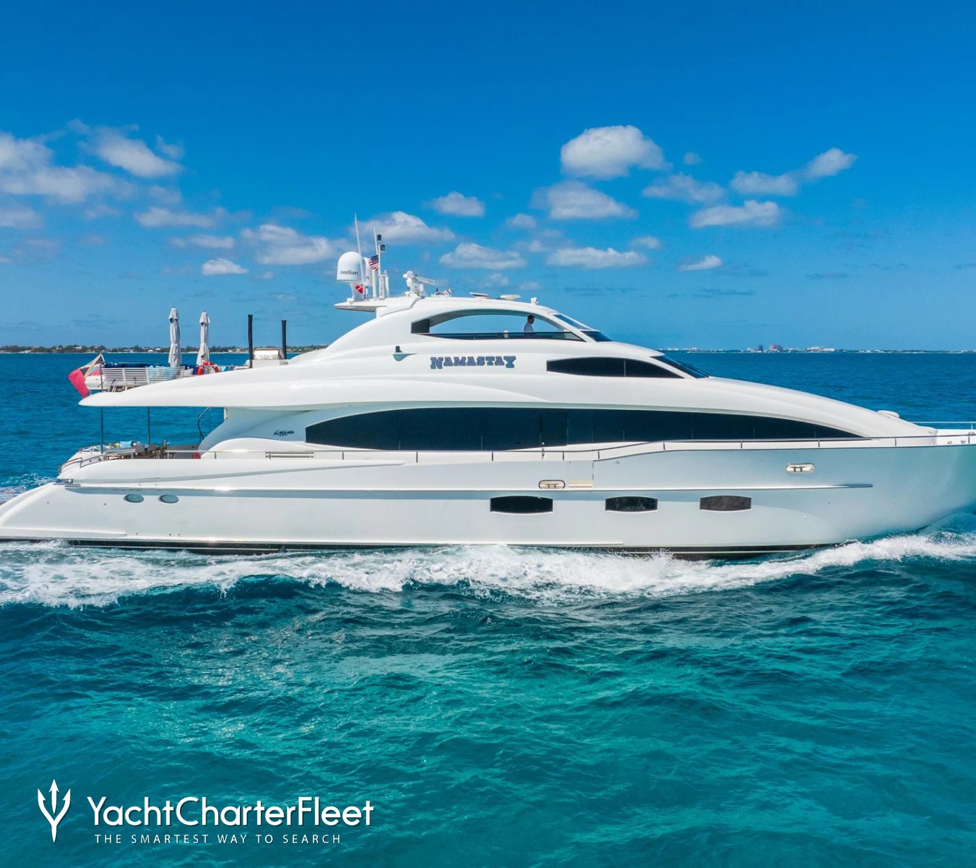 Charter yacht NAMASTAY offers an inviting yacht rental experience with spacious social decks, a sun-soaked Jacuzzi, and an extensive watersports inventory. Her five-cabin configuration ensures generous accommodation for up to 10 guests, while her well-balanced design allows for smooth cruising across varied coastal conditions.