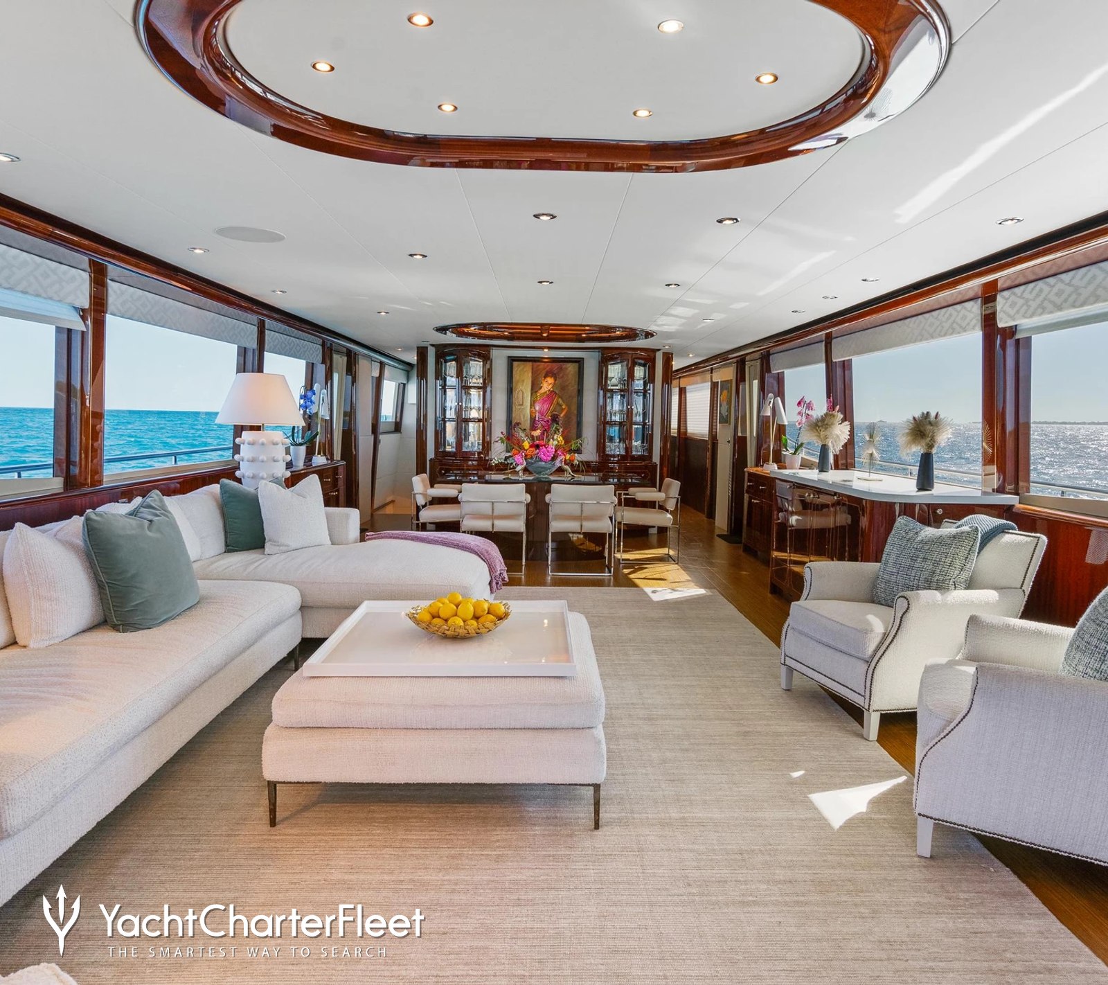Few yacht rentals cruising New England can rival the scale, comfort, and accessibility of LADY BETH. This 180ft (54.86m) Newcastle charter yacht delivers expansive multi-deck living, a private elevator connecting all levels, a full beach club, gym, and wheelchair-friendly access, making her one of the most inclusive luxury charter yachts operating in the region.