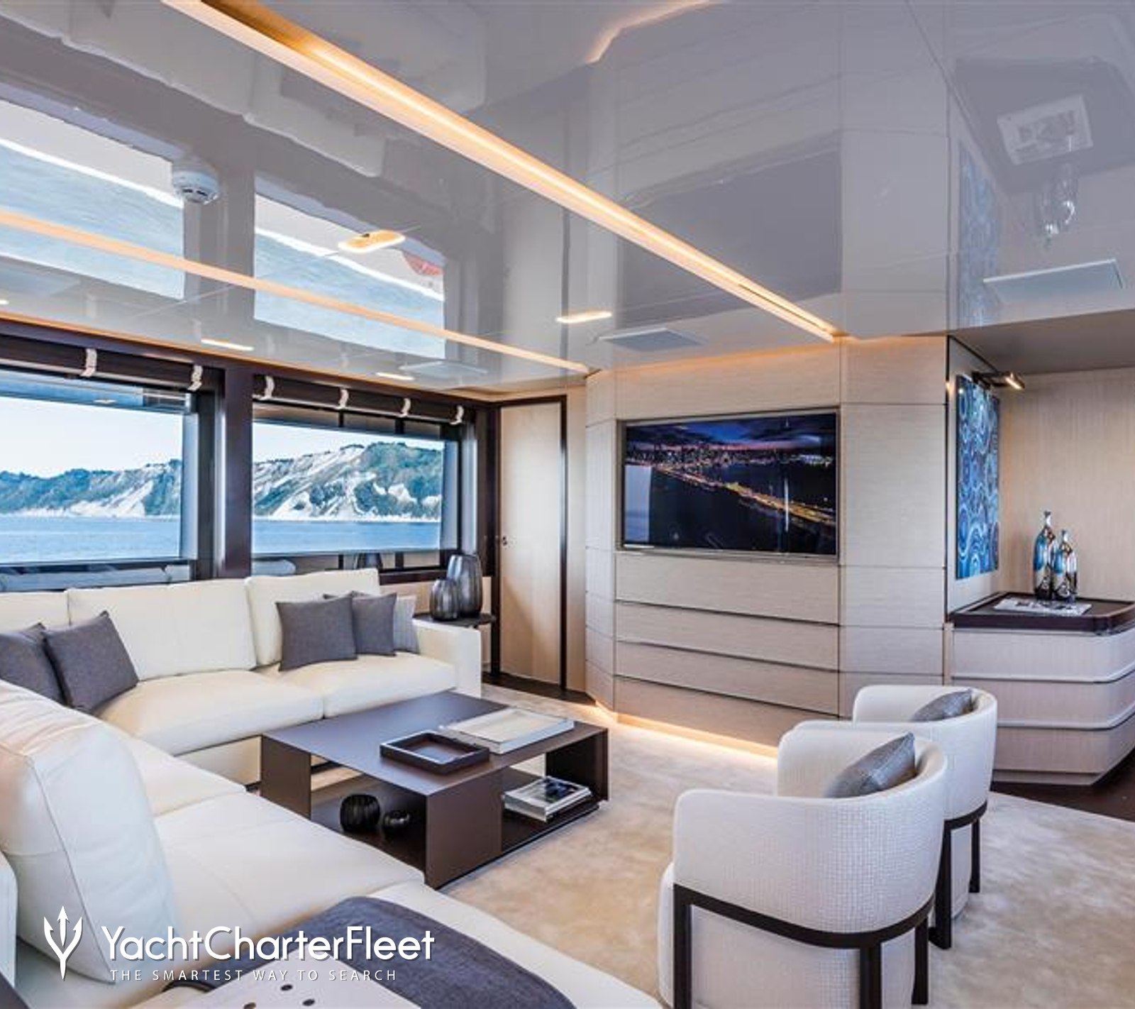 Contemporary, elegant, and meticulously crafted, 90ft (27.43m) yacht rental LAILA represents a new generation of compact luxury charter yachts. Designed by Patricia Urquiola, her interiors combine refined minimalism with warm textures, creating an intimate yet indulgent onboard ambiance.