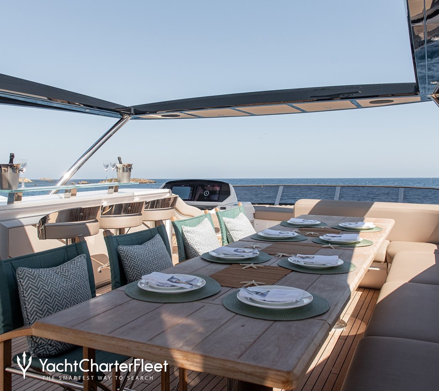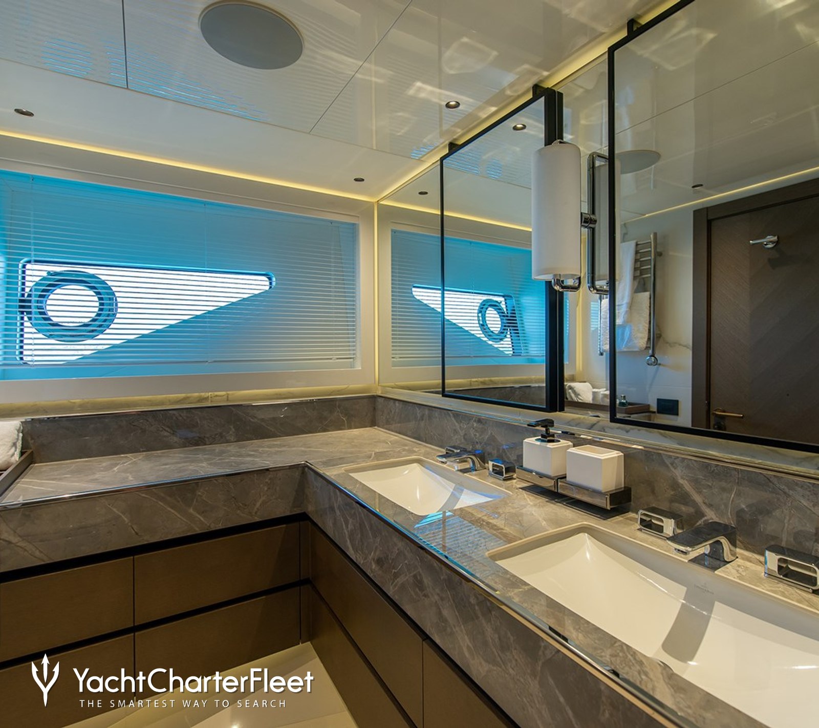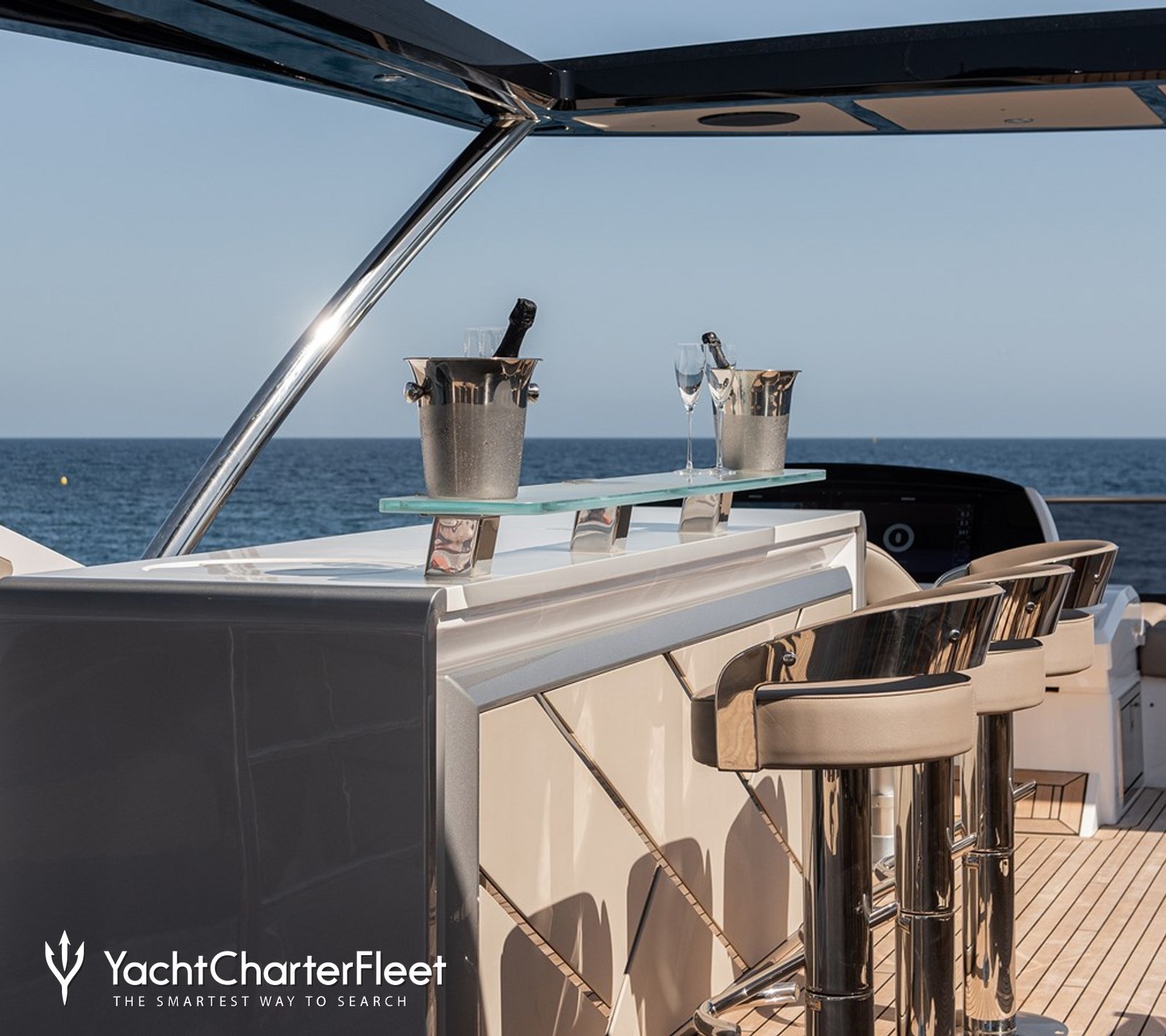 Complemented with Wi-Fi connectivity and air conditioning throughout, the indoor environment offers a peaceful retreat, with all the indulgence you'd expect from a Sunseeker 90 Ocean charter.
