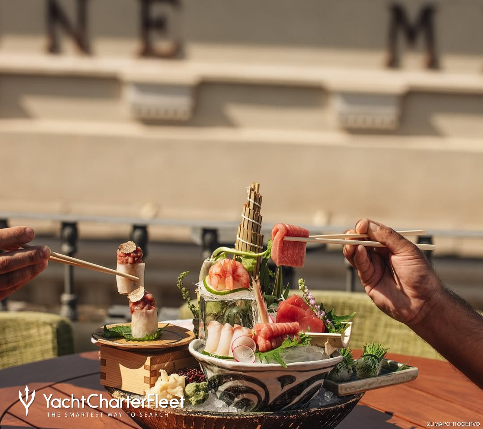 Those looking to enjoy a more curated experience can choose the omakase menu. This chef-selected option takes guests on a journey through signature flavors, offering a well-paced and flavorful tasting experience. It is a great choice for those unfamiliar with Japanese cuisine or anyone who simply wants to sample a little bit of everything. This level of culinary craftsmanship makes the restaurant a frequent stop for guests on a Sardinia yacht charter looking for international flavors after days of regional Italian dining.