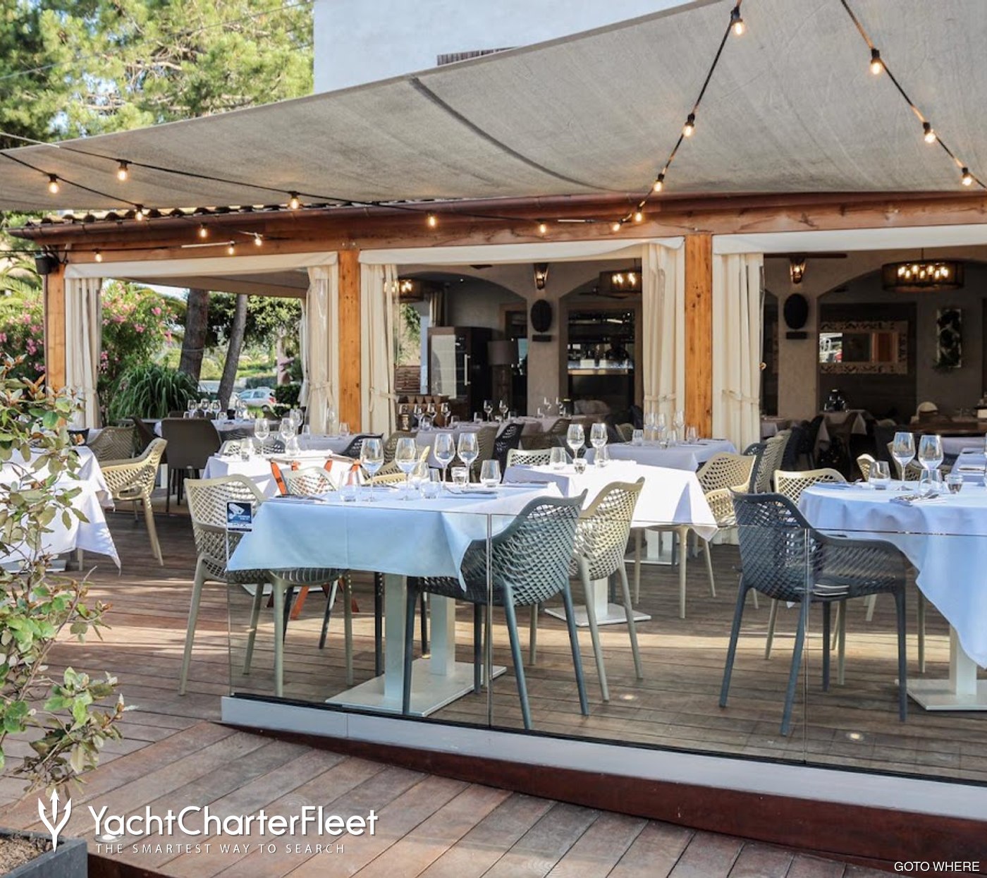 Emporium stands out with its dark wood, concrete textures, and curated lighting. There is a club style feel inside, while the outdoor space offers a more laid back setting to enjoy long Corsican evenings. Music adds to the vibe, and the space shifts naturally from lunch spot to evening hangout. This modern aesthetic provides a distinct contrast for anyone on a Mediterranean yacht charter who has spent the day among the rugged, natural limestone cliffs of the coastline.