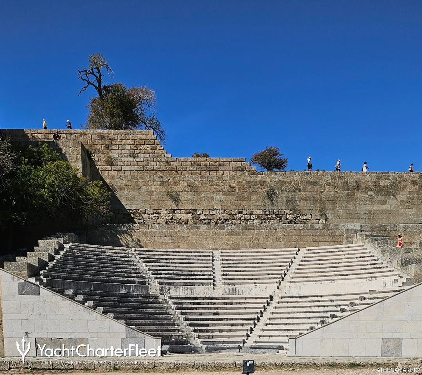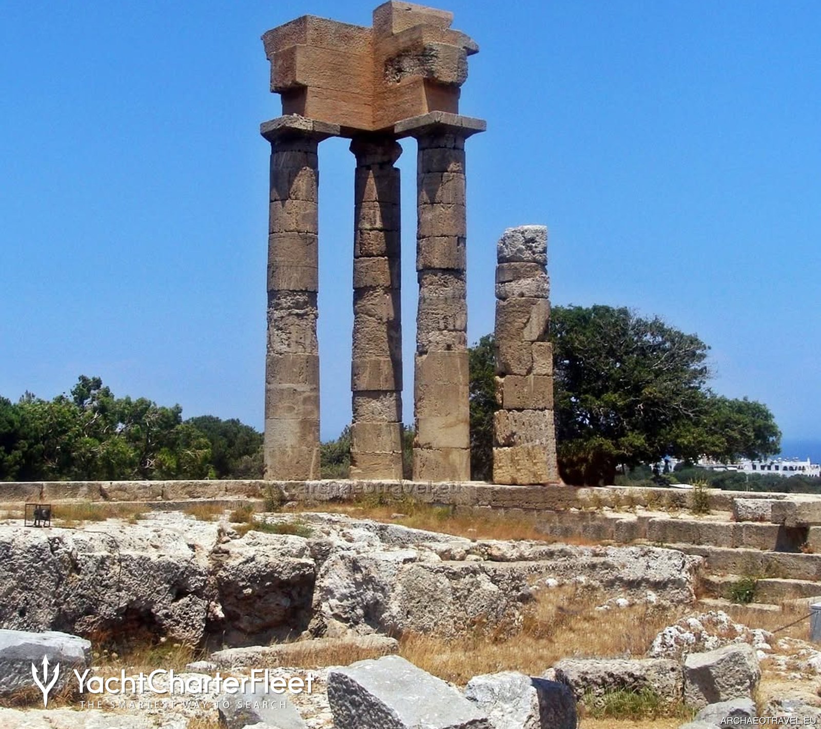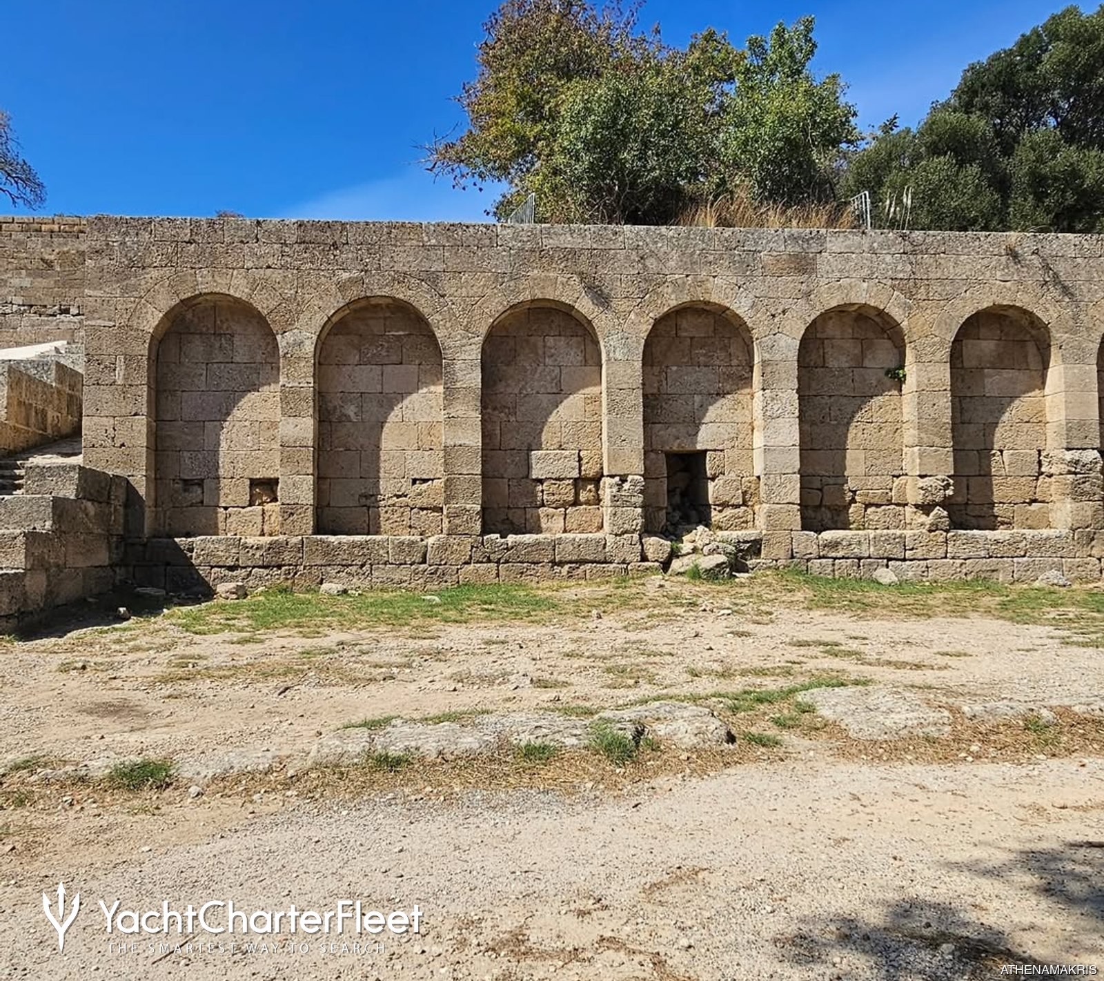 Visitors from East Mediterranean yacht charters are drawn by the peaceful atmosphere and open spaces, making it a good spot for a relaxing walk or a break from busier city areas. The ruins sit on Monte Smith hill, where visitors can wander freely among the columns, steps, and stones that remain. It is especially striking around sunset, when the soft light casts long shadows and brings out the colors in the weathered stone.