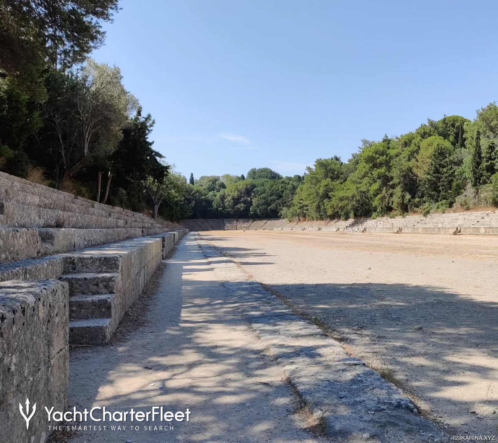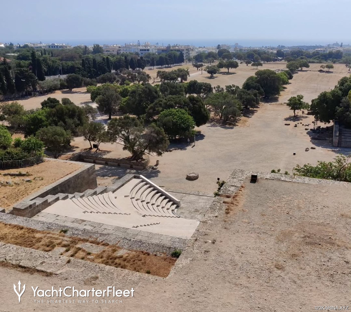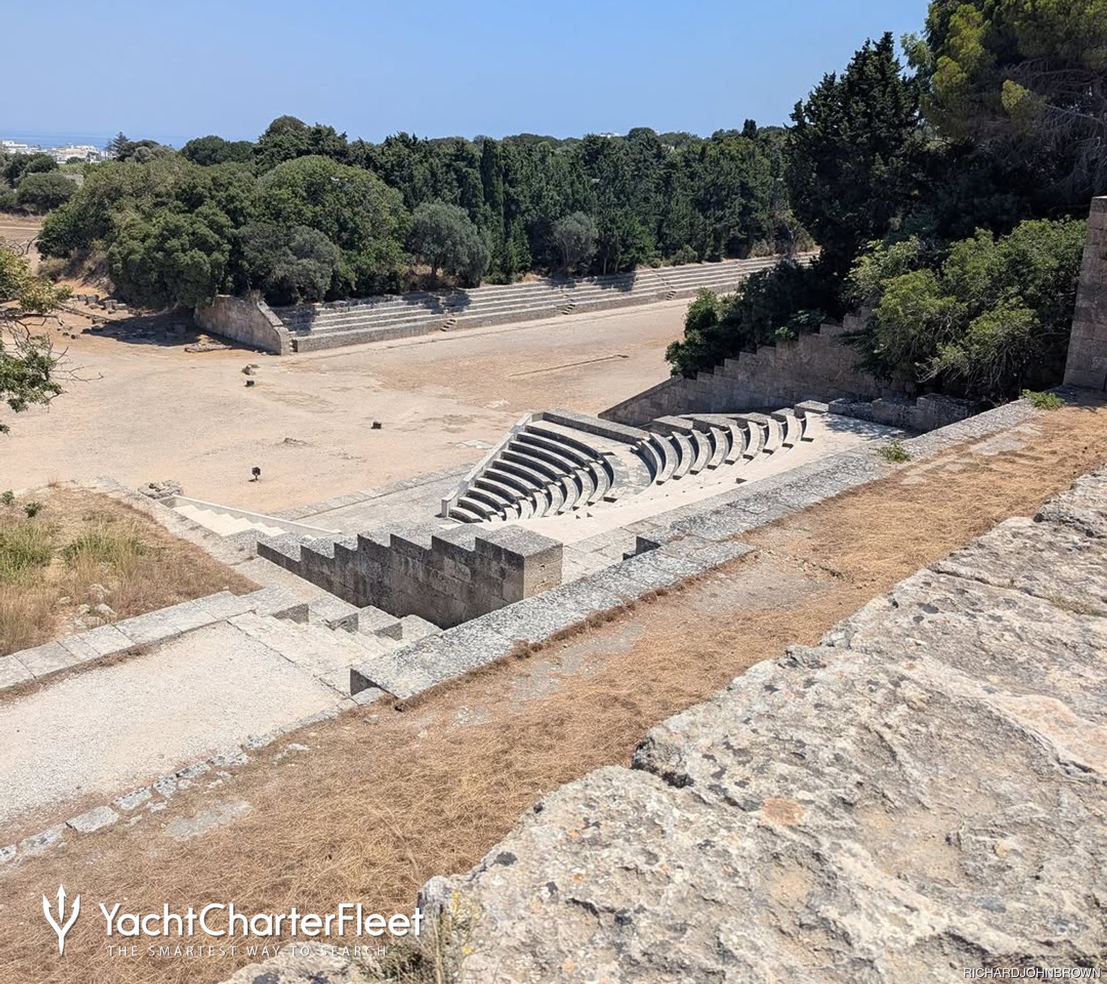 Chartered routes can include visits to remote bays, peaceful beaches, and important cultural spots like Monte Smith. Once ashore, it is a short trip from the harbor to the ruins, allowing guests to enjoy the site without a long inland journey. The site is surrounded by trees and greenery, offering shade and a sense of peace that complements the quiet of the sea.