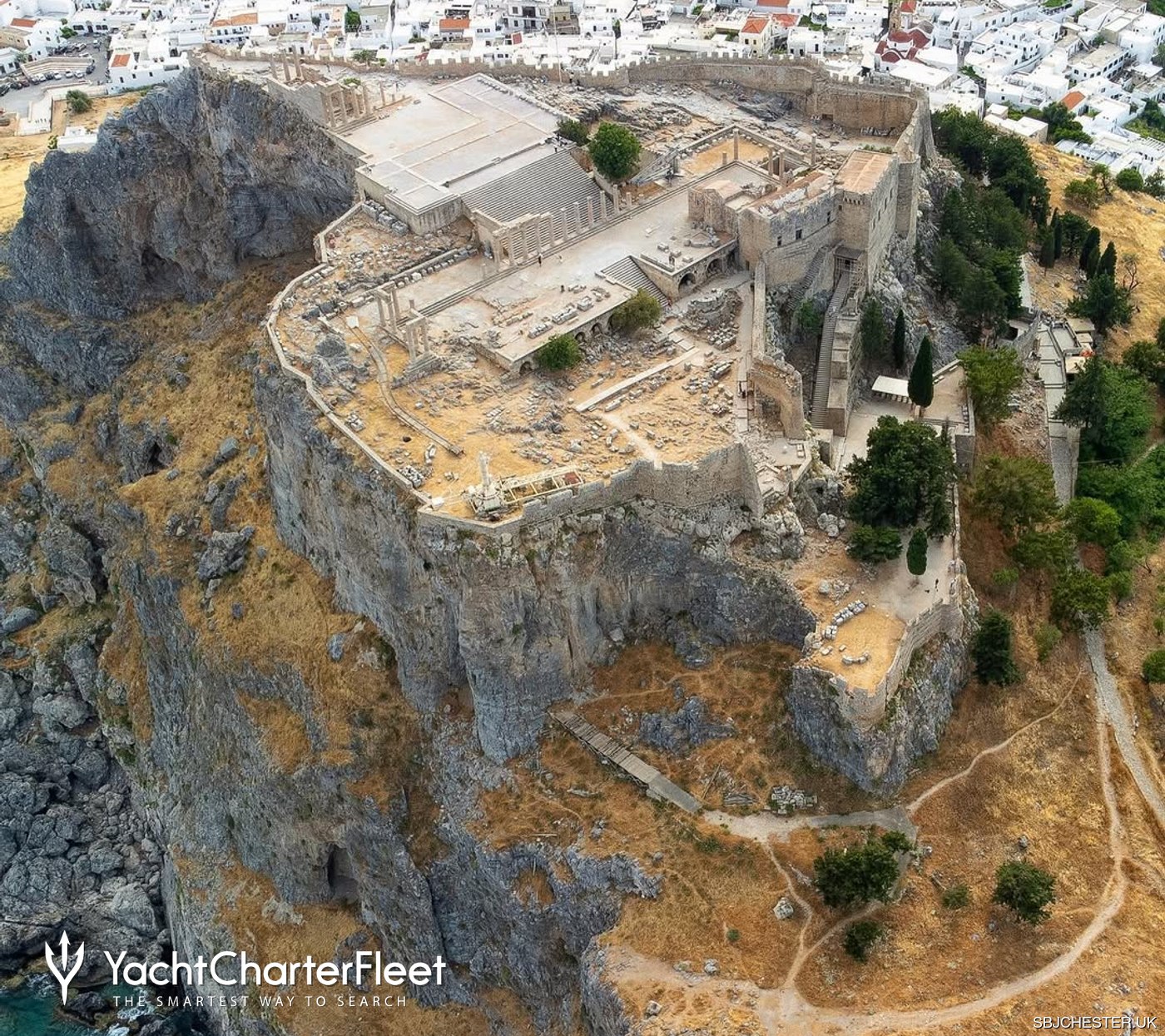 The approach to the Acropolis is part of the experience. Walking through the village of Lindos, past local shops and shaded courtyards, guests begin the climb toward the ruins. This scenic route is a favorite for those on a Mediterranean yacht charter who wish to stretch their legs and explore the island's interior. The path is rugged but manageable, with many choosing to pause along the way to take in the scenery.