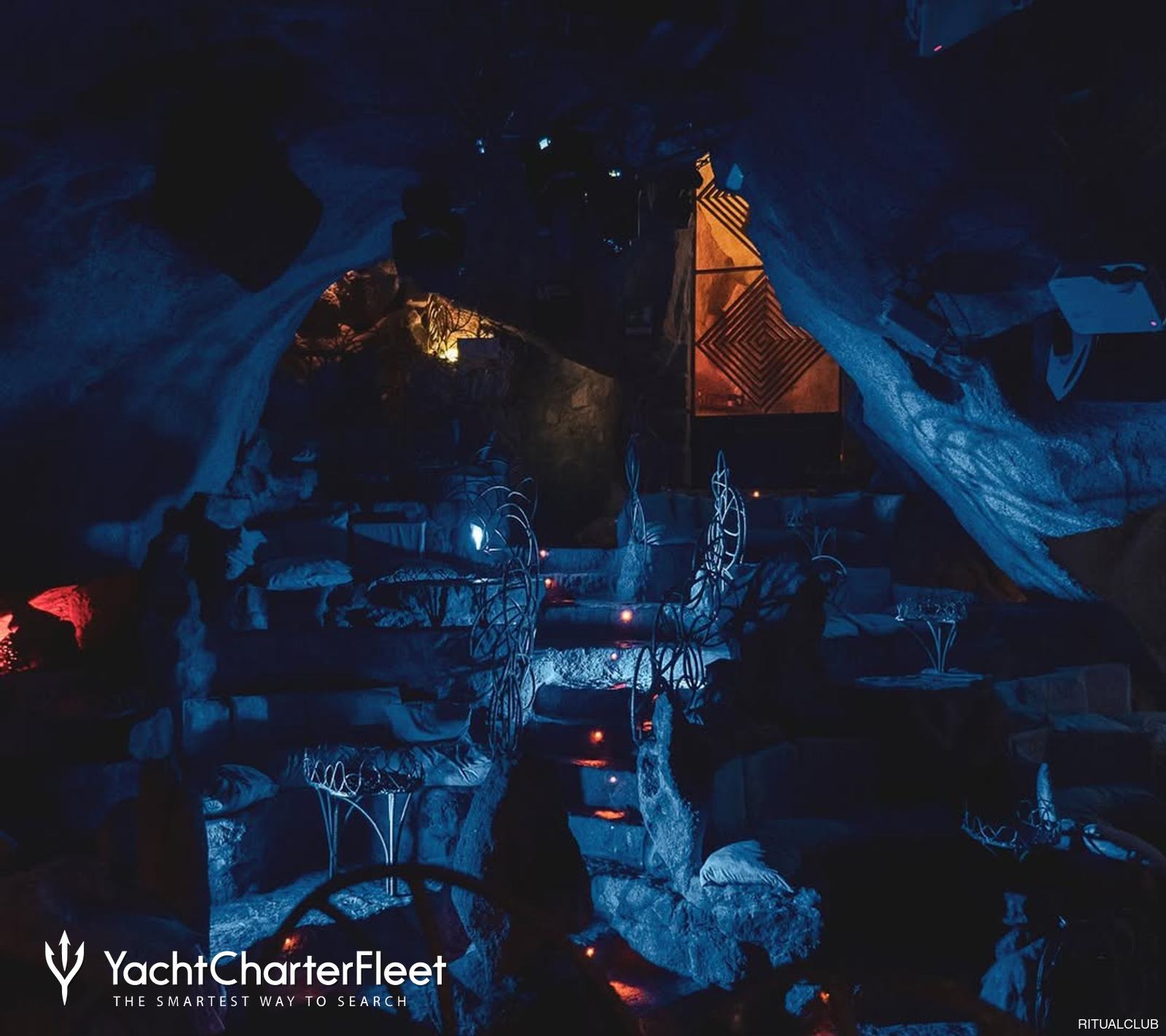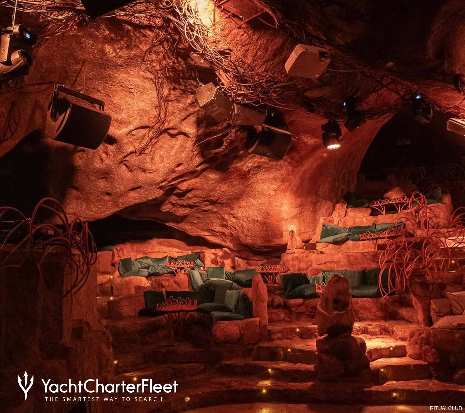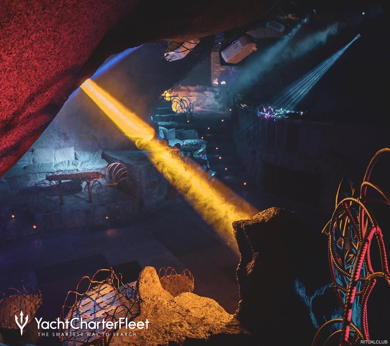 The combination of sophisticated sound systems, theatrical lighting, and the eclectic use of iron and granite in the club’s construction creates an environment that is both modern and timeless. Few nightlife venues on Mediterranean yacht charters can match the way Ritual blends culture, architecture, and energy.