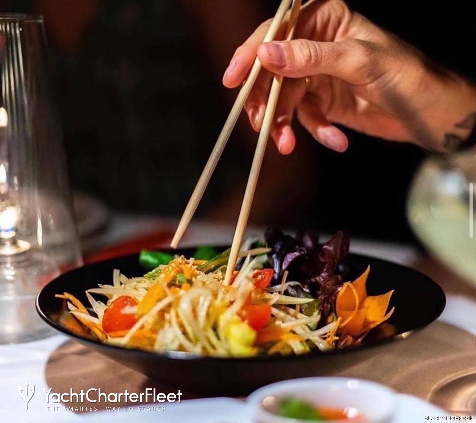The culinary team hails from Bangkok, bringing experience from some of the most prestigious kitchens in Thailand. Their expertise ensures that every dish captures the essence of traditional Thai cuisine while meeting the high standards expected in Gustavia. This professional background is a key factor for those on a Leeward Islands yacht charter looking for authentic international flavors.