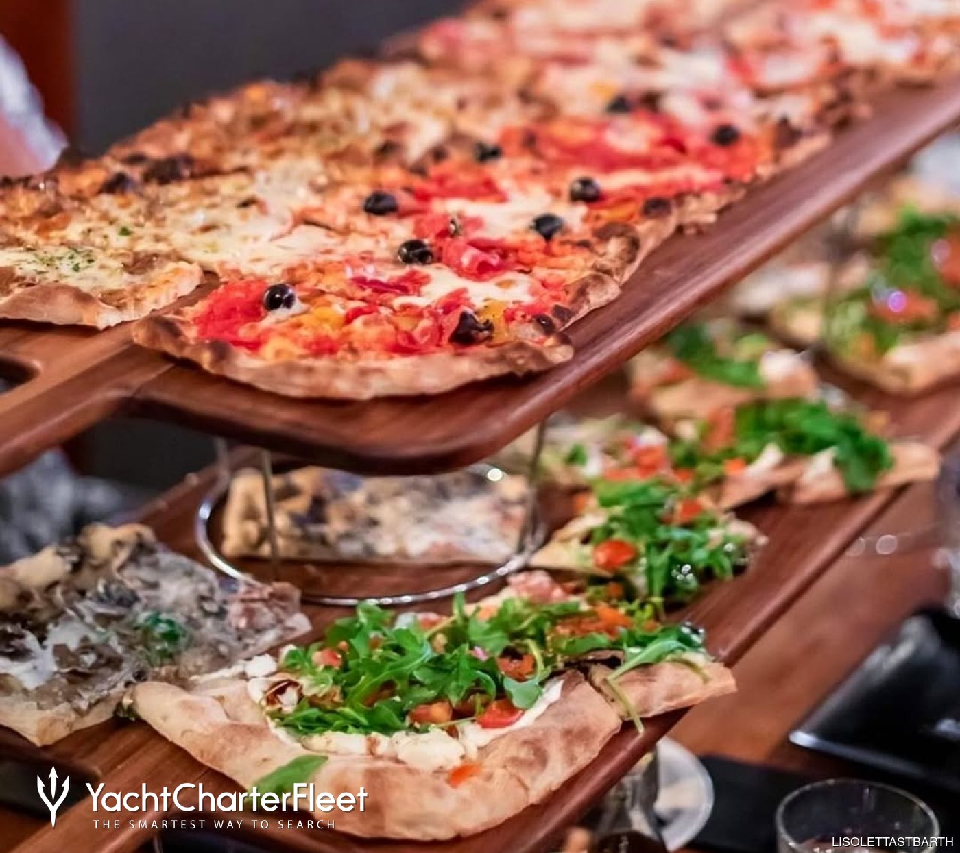 Every dish here serves as a celebration of Italian tradition. The menu focuses on the signature pizza al metro, a specialty where pizzas are served by the meter. These rectangular creations are prepared with precision using quality ingredients. The result is a product with a balance of crispy crust and vibrant toppings, making it a reliable choice for those on a Leeward Islands yacht charter.