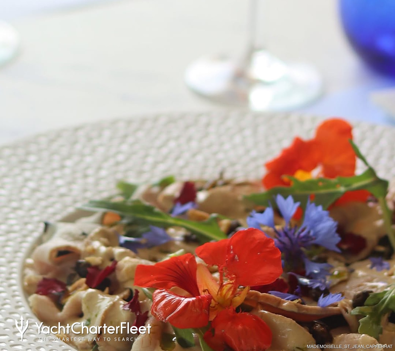 In the evening, the dining experience elevates, as guests are invited to savor flavors synonymous with Mediterranean yacht charters crafted with fresh, local ingredients, handpicked from the nearby market and Mademoiselle’s own vegetable garden.