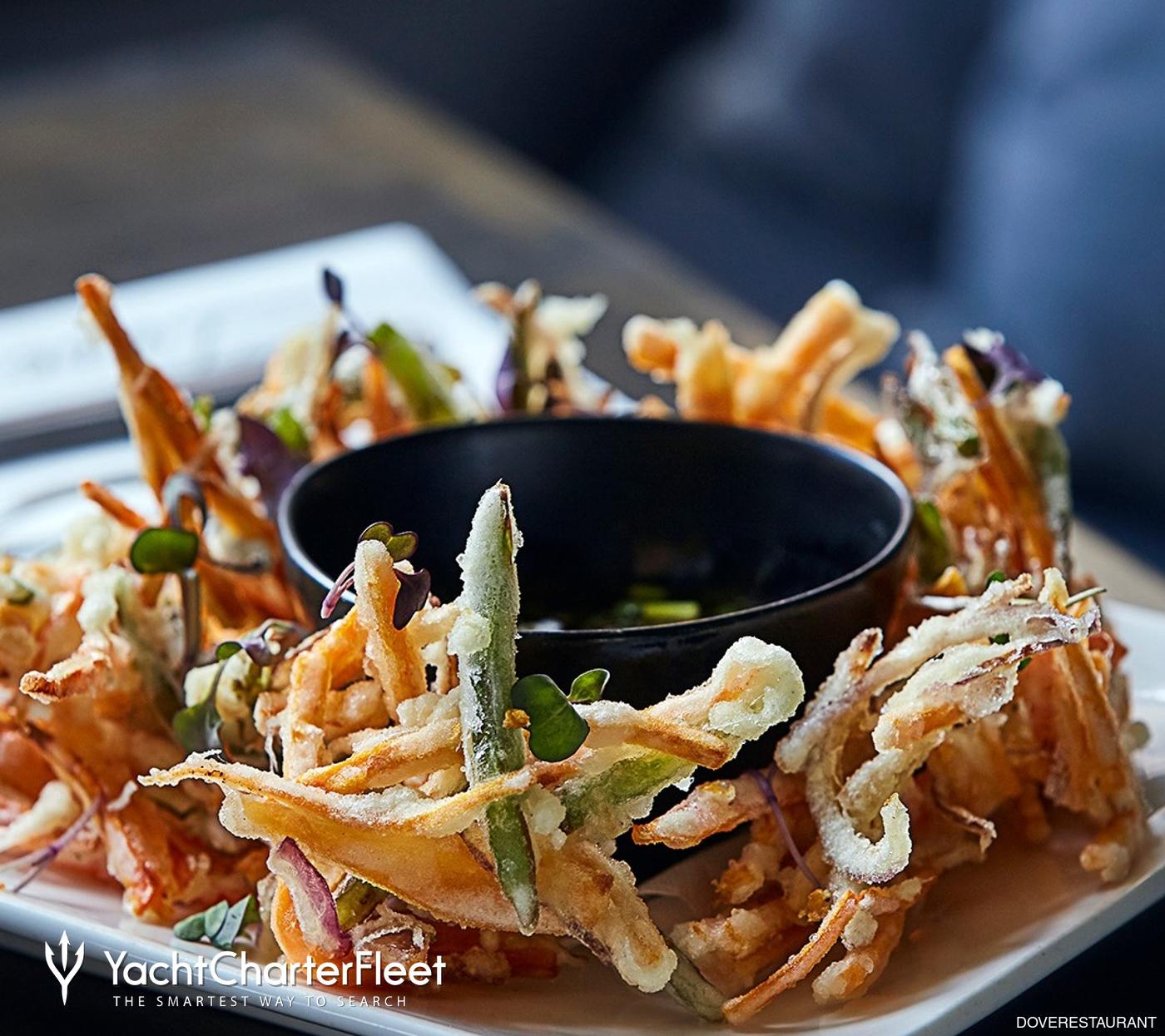 When cruising through the area, The Dove Restaurant deserves a place on your British Virgin Islands yacht charter itinerary. Its combination of heritage setting, contemporary cuisine, and stylish lounges makes it one of the most distinctive dining experiences in Tortola.
