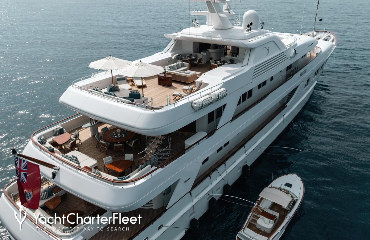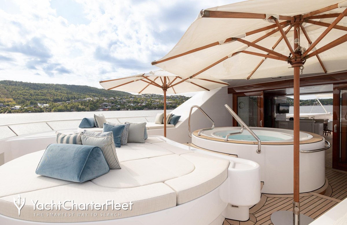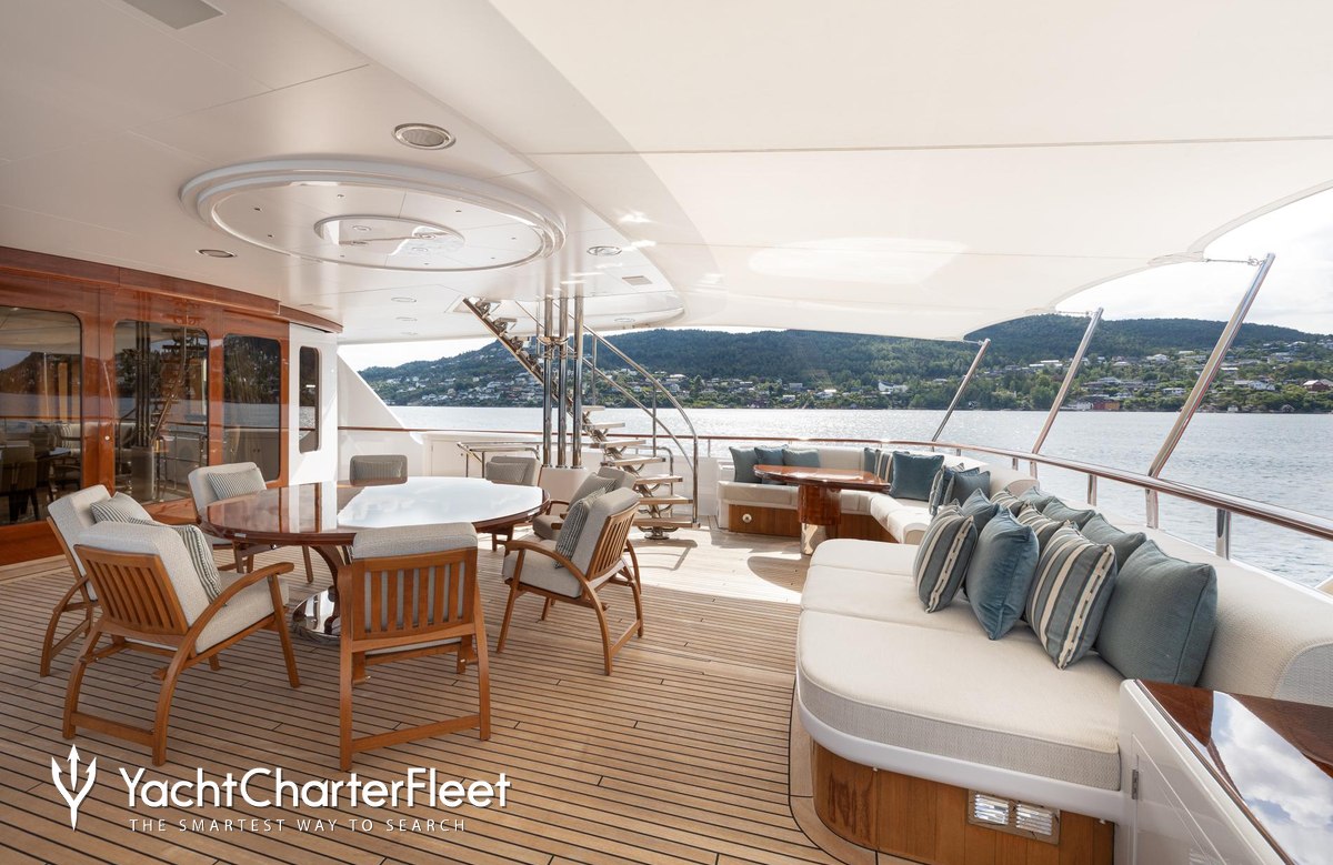 From bow to stern, Nectar is brimming with an fantastic array of social and dining areas, both inside and out, making her the ideal yacht for relaxing and entertaining whilst on charter. She is equipped with an elevator and gym.