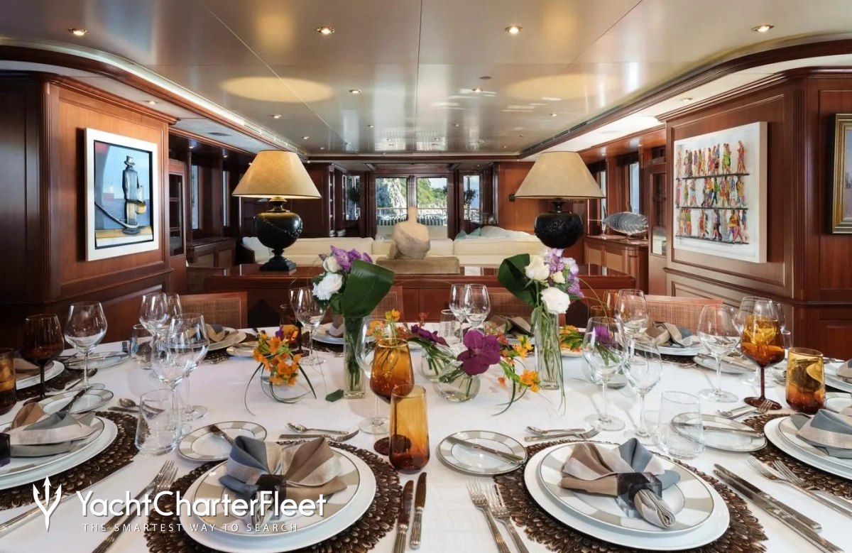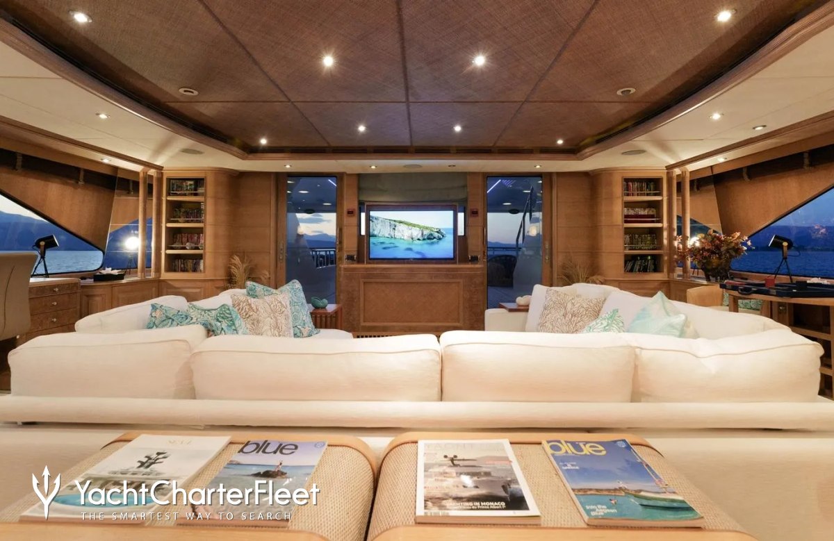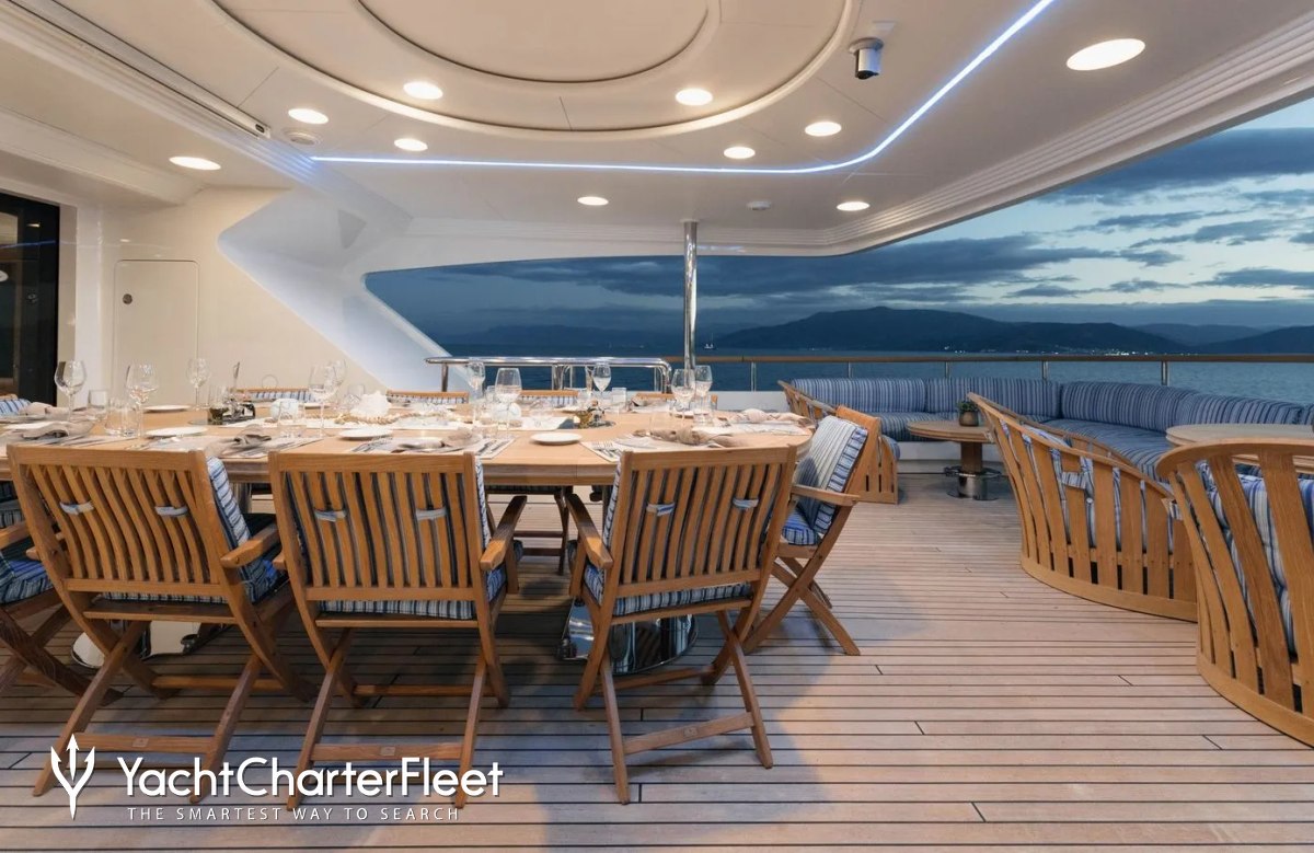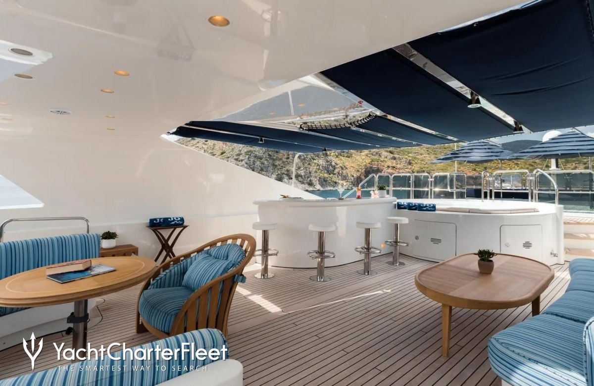 Keeping comfortable and entertained on Jo I is easy thanks to the available amenities including a dancefloor where you and your guests can celebrate in style. Head to the beach club and take advantage of indoor-outdoor living and entertaining plus retreat to the deck jacuzzi and soak up the scenery.
