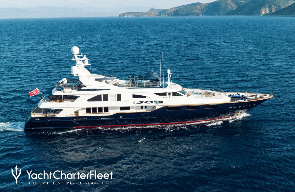 Built in 2004, Jo I offers guest accommodation for up to 12 guests in 6 suites comprising a master suite, one VIP cabin, two double cabins and two twin cabins. She is also capable of carrying up to 12 crew onboard to ensure a relaxed luxury yacht charter experience.