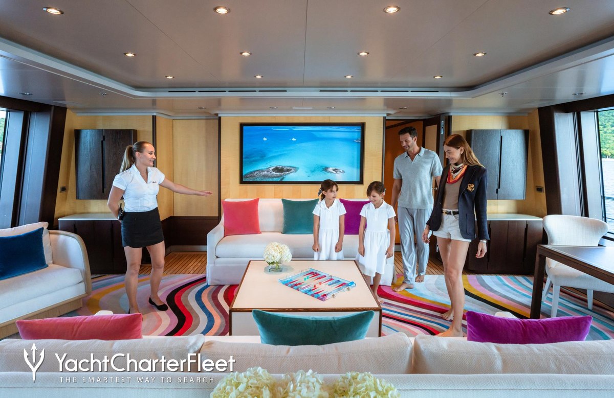 Boasting an array of sumptuous living areas laid out invitingly to create a warm and welcoming atmosphere onboard, motor yacht Bella is the perfect luxury charter yacht for friends and family.