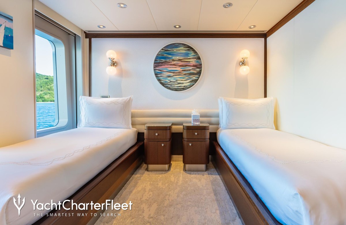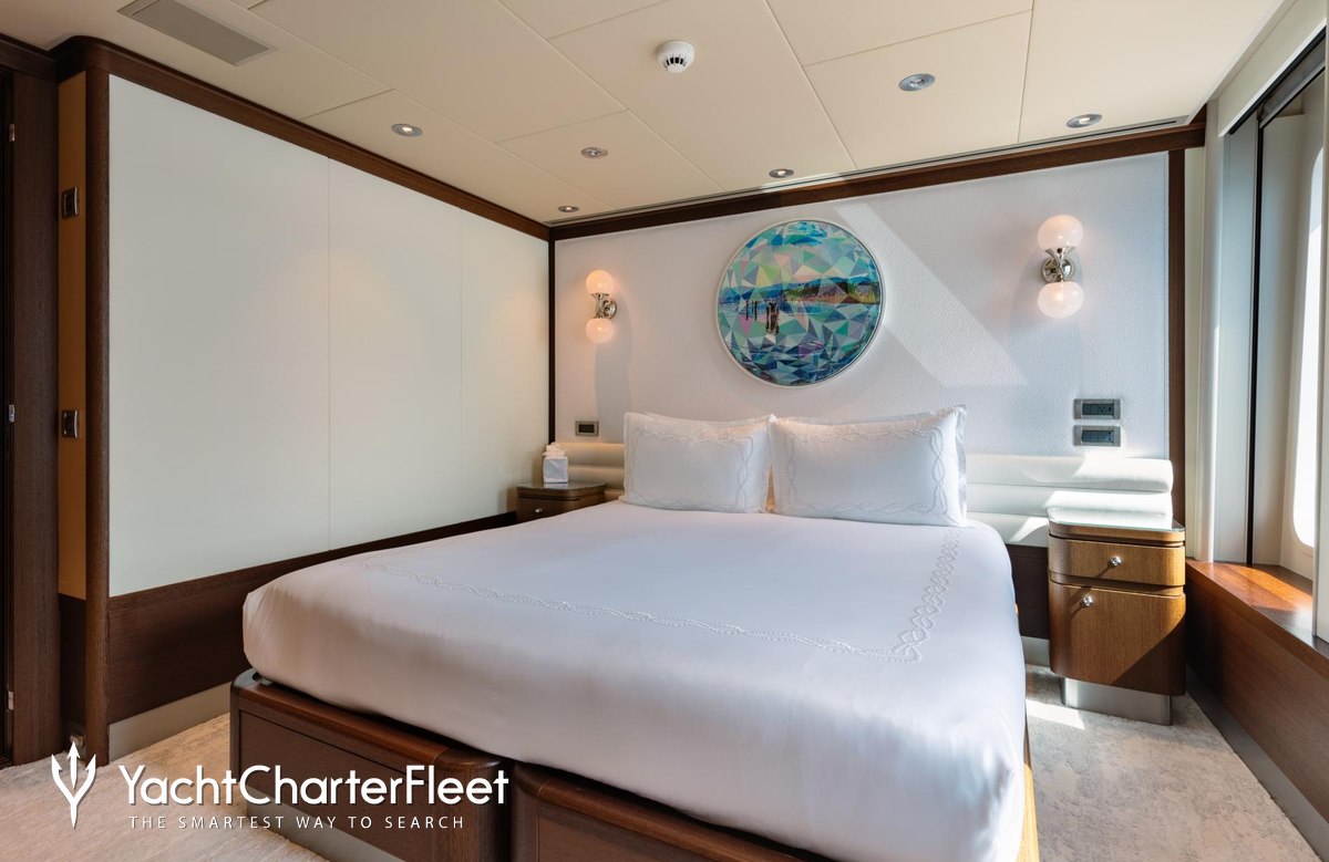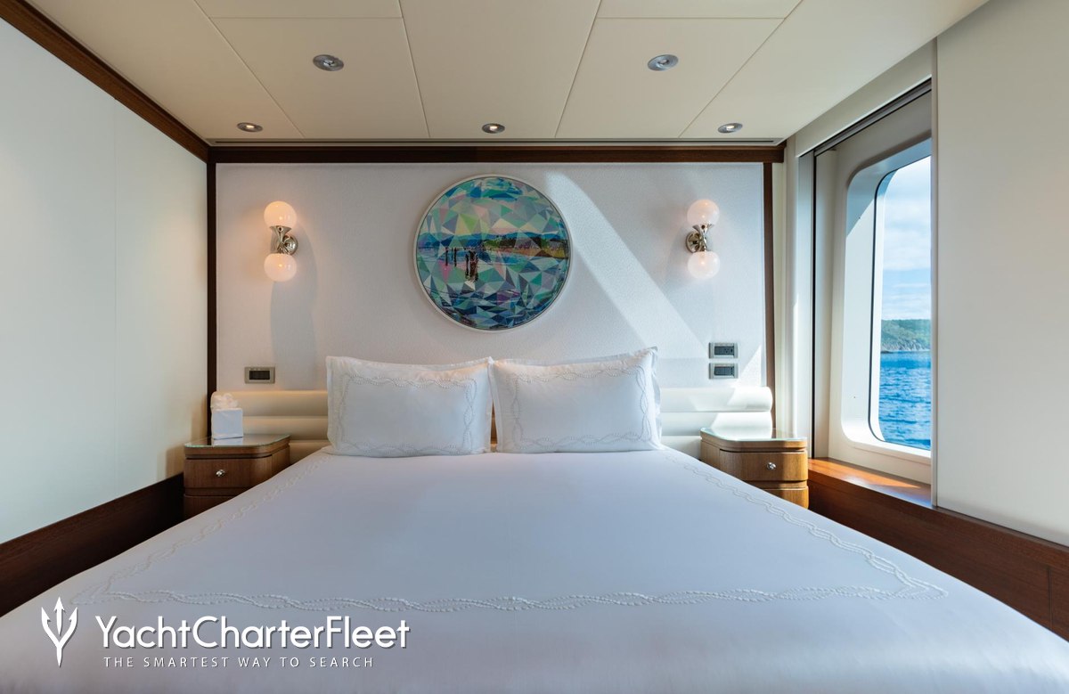 Built in 2008, Bella offers guest accommodation for up to 12 guests in 6 suites comprising a master suite, two double cabins and two twin cabins. There are 6 beds in total, including 2 king, 2 queen, 2 singles and 2 convertible. She is also capable of carrying up to 9 crew onboard to ensure a relaxed luxury yacht charter experience.