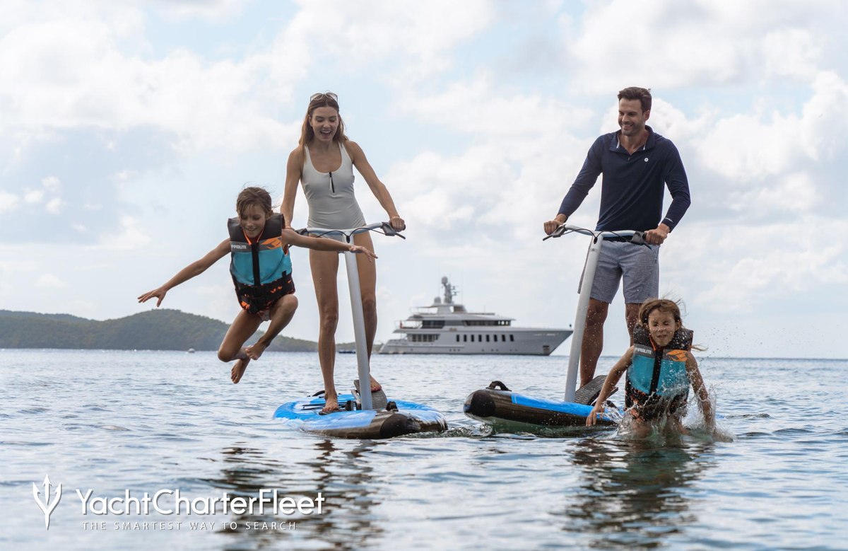Your family and friends could learn to use the water toys on your charter vacation onboard this luxury charter yacht. Motor Yacht Bella is a certified RYA Training Centre yacht.