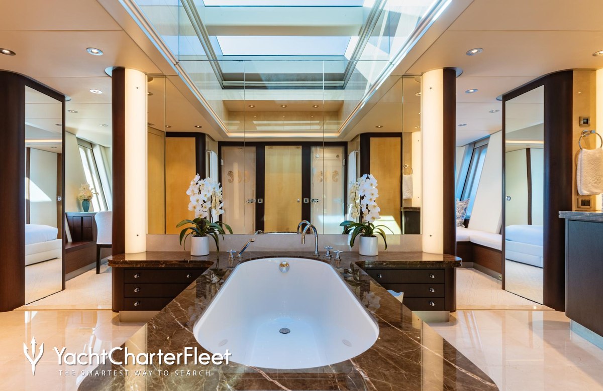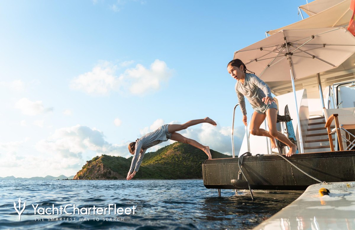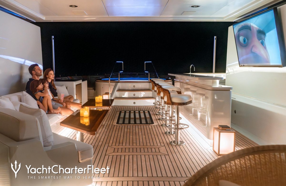 A charter on Bella is comfortable and convenient thanks to the provided amenities such as the pool, useful to practice your technique or just cool off. Maintain your fitness routine and work out in the well-equipped gym or sit back with a glass of champagne in the deck jacuzzi.