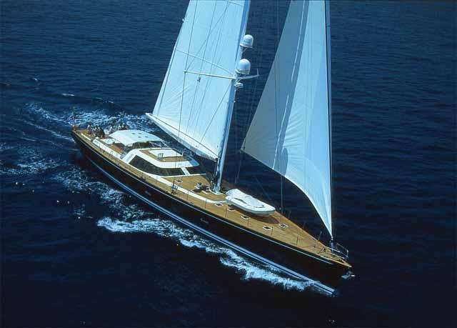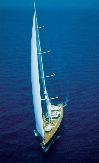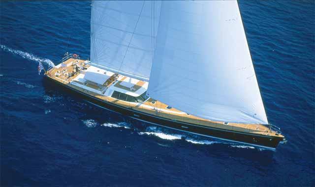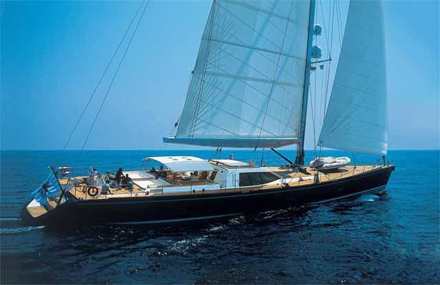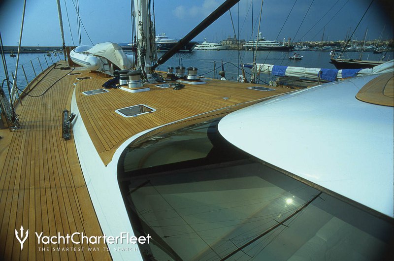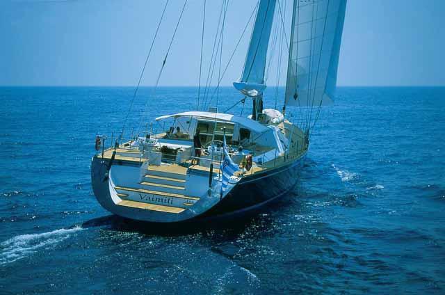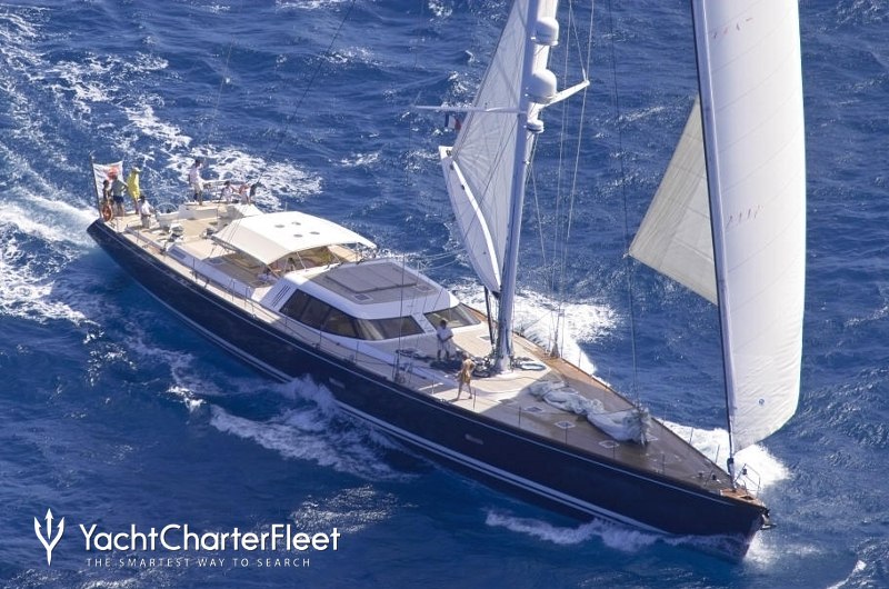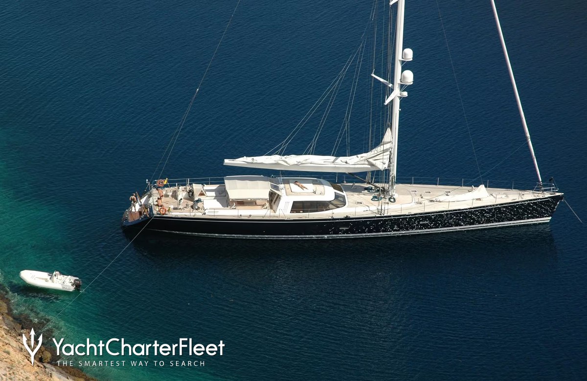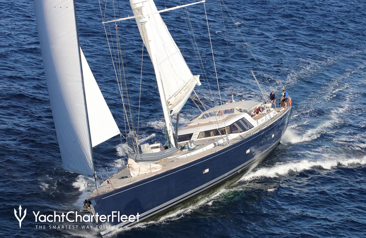The 39.2m/128'7" 'Vaimiti' sail yacht built by shipyard Tréhard Marine is available for charter for up to 8 guests in 4 cabins.