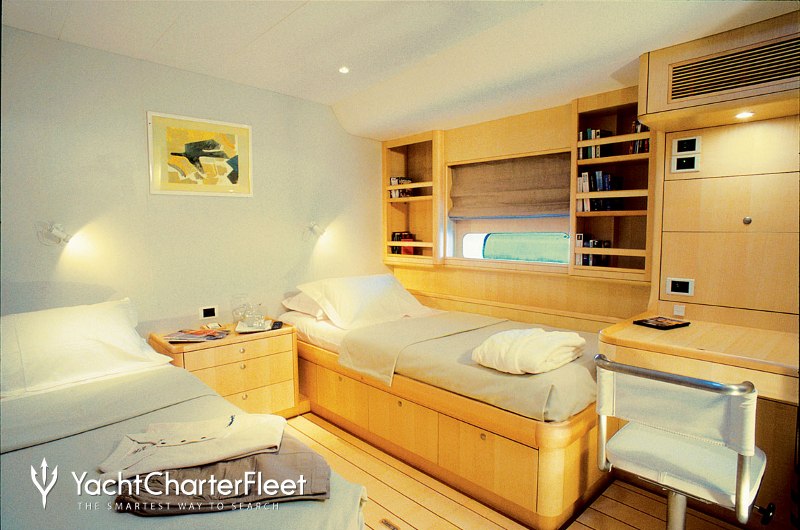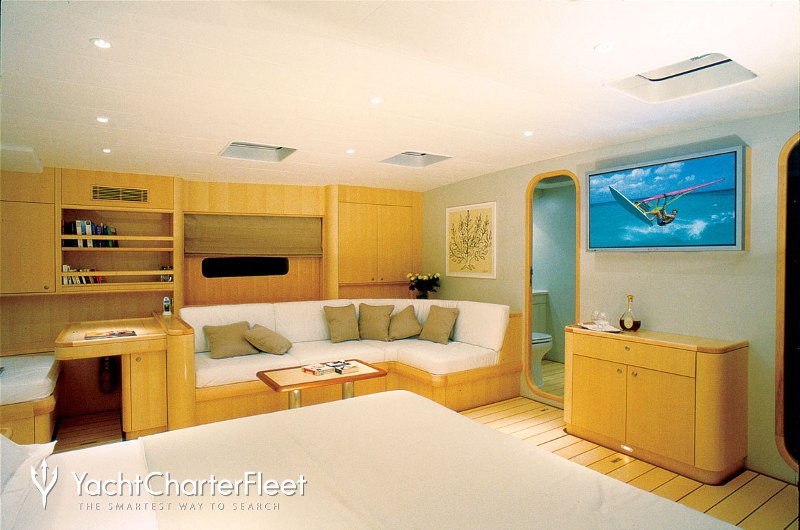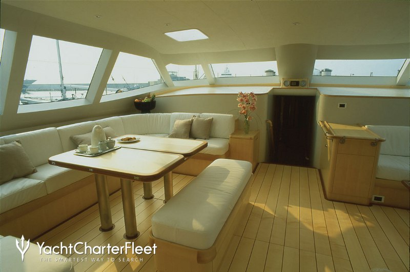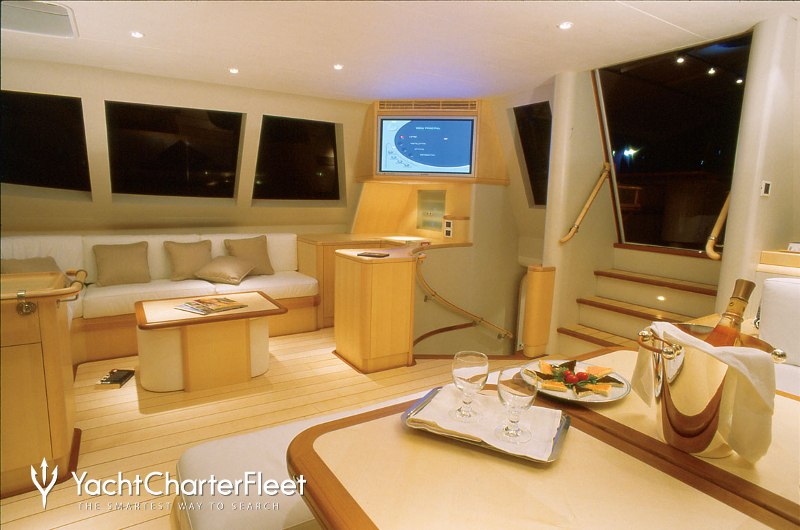 Whatever your activities on your charter, you'll find some impressive features are seamlessly integrated to help you, particularly satellite communications, keeping you connected on any voyage. Take advantage of the on board Wi-Fi and stay connected at all times or guests will experience complete comfort while chartering thanks to air conditioning.