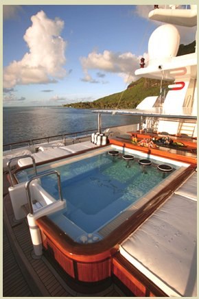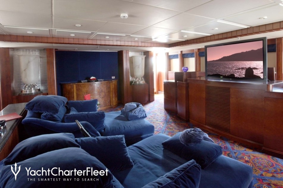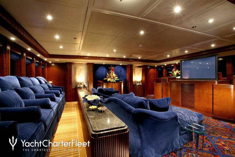 A charter on Nomad is comfortable and convenient thanks to the provided amenities, particularly a state-of-the-art movie theatre for movie nights. For the ultimate relaxation experience, Nomad plays host to a luxury spa and the swimming pool is perfect for exercising or admiring a romantic sunrise. Head to the beach club and take advantage of indoor-outdoor living and entertaining and in addition a gym with all the latest equipment is available for a good work out. Sit back with a glass of champagne in the deck jacuzzi.