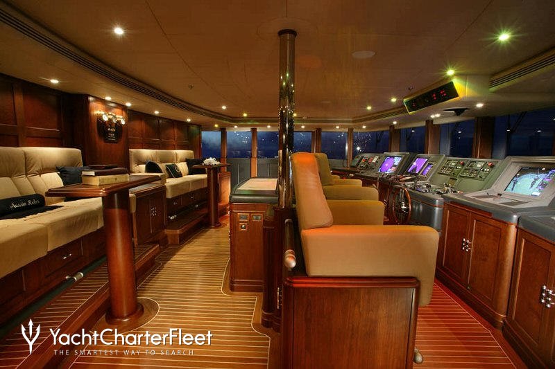 Nomad is great for families thanks to her child-friendly setup. Built in 2003, She offers guest accommodation for up to 12 guests with a layout comprising a master suite located on the main deck, two VIP cabins, one double cabin and two twin cabins. The supremely spacious full beam master suite incorporates its own study benefits from a his and her bathroom. There are 10 beds in total, including 1 king, 3 queen, 4 singles and 2 pullmans. She is also capable of carrying up to 16 crew onboard to ensure a relaxed luxury yacht charter experience.