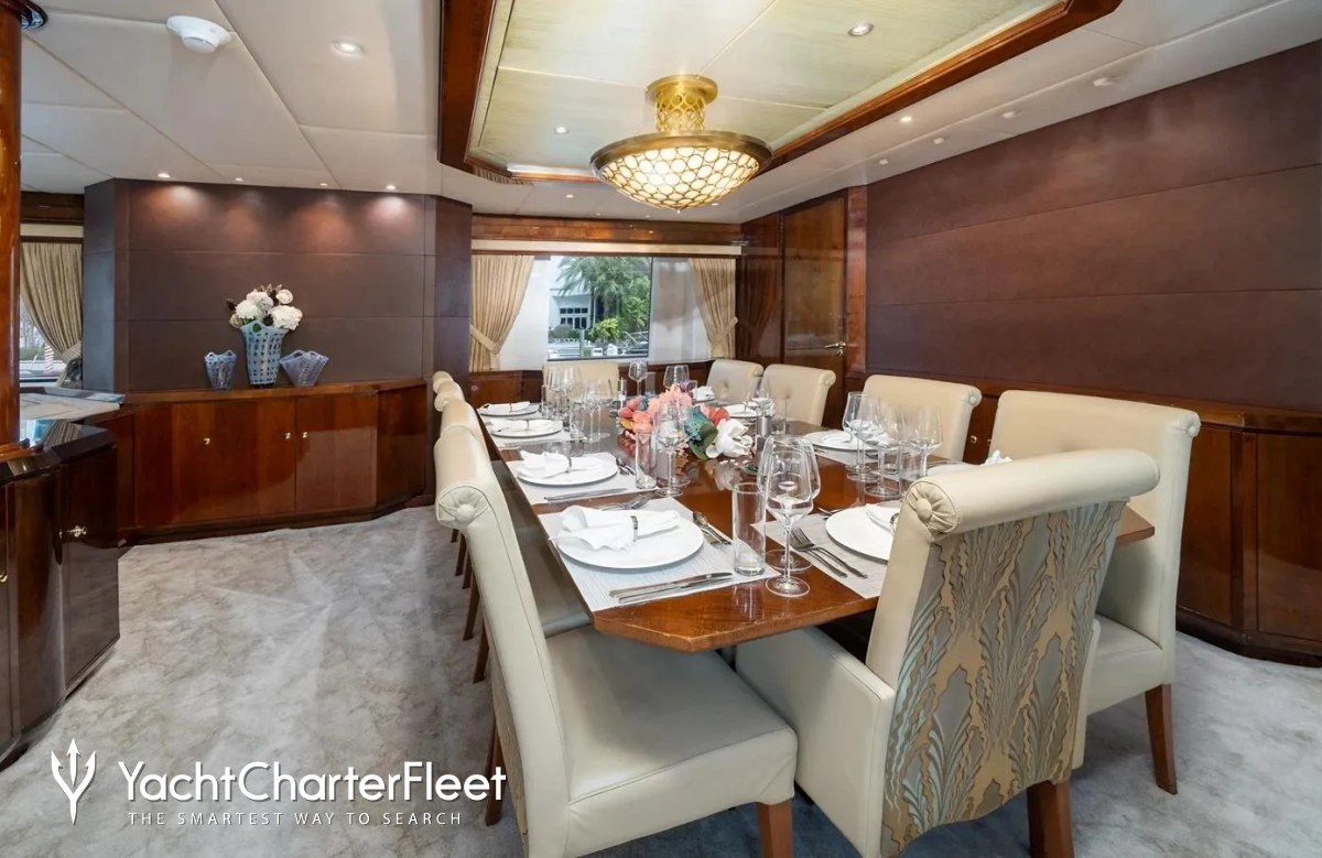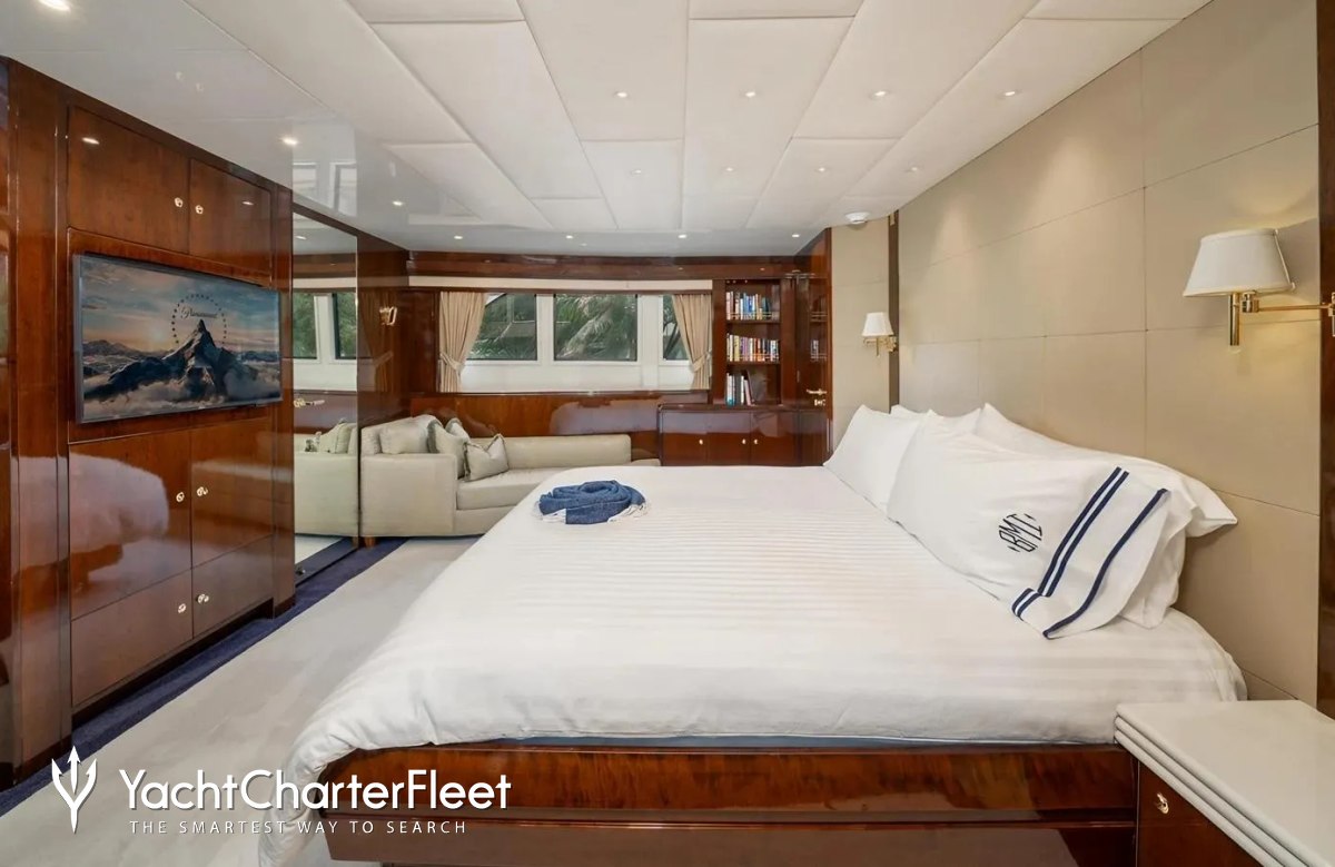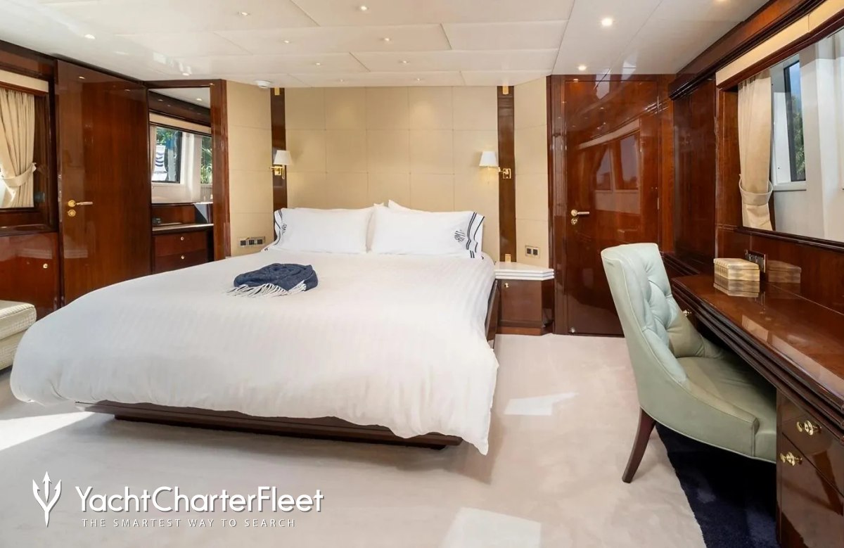 Built in 2001, Blue Symphonie offers guest accommodation for up to 10 guests in 5 suites comprising a master suite, one VIP cabin and three double cabins. There are 5 beds in total, including 1 king, 3 queen and 1 double. She is also capable of carrying up to 7 crew onboard to ensure a relaxed luxury yacht charter experience.