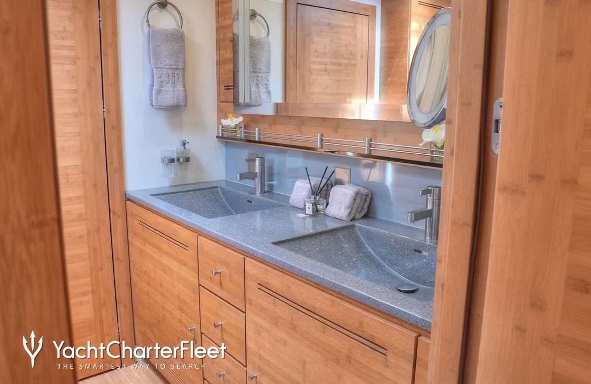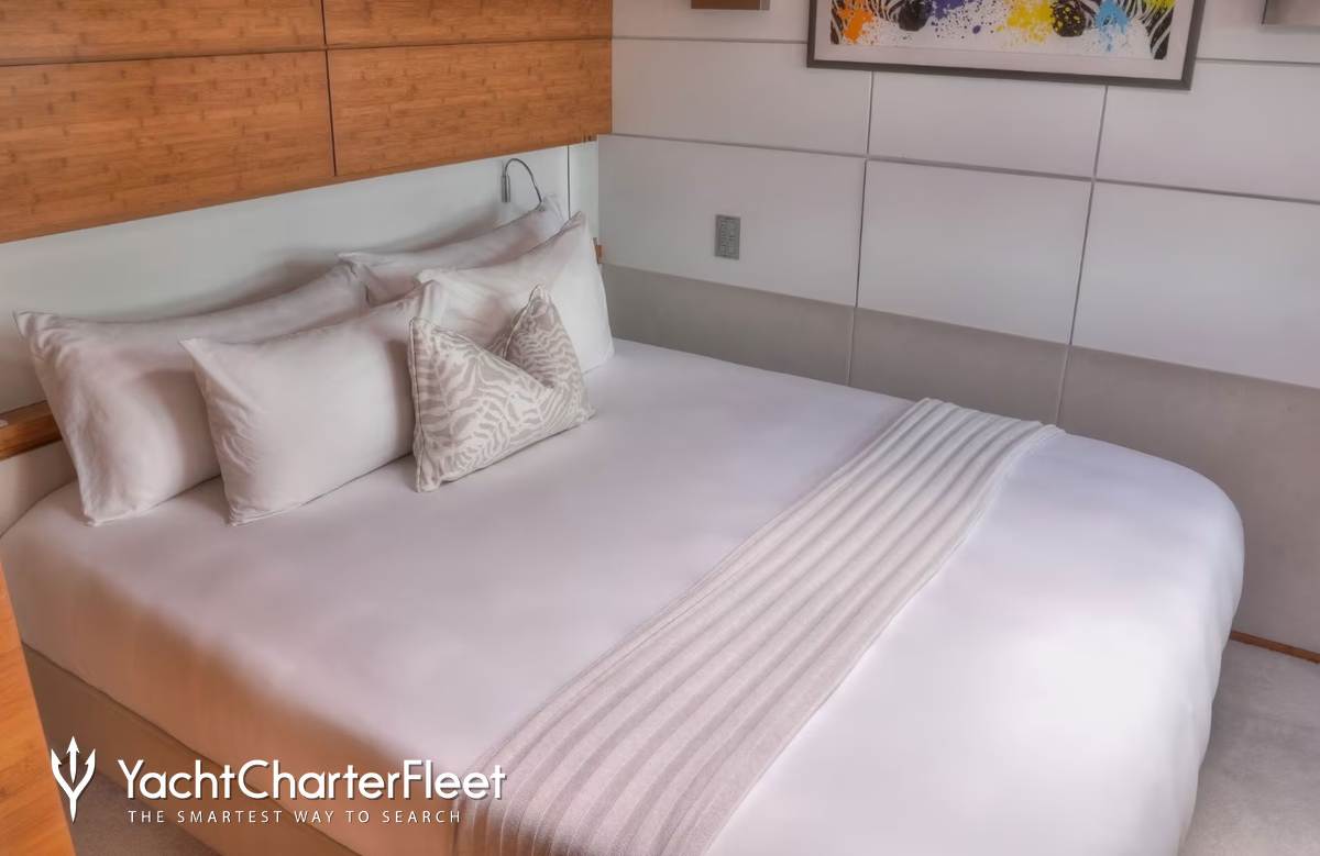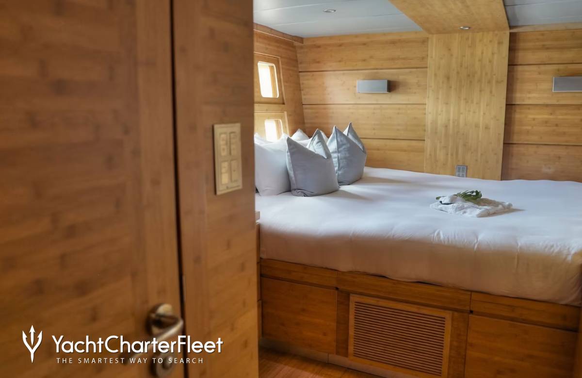 Families will particularly love Che thanks to her child-friendly setup. She offers guest accommodation for up to 6 guests with a layout comprising three double cabins. There are 8 beds in total, including 7 singles and 1 pullman. She is also capable of carrying up to 5 crew onboard to ensure a relaxed luxury yacht charter experience.