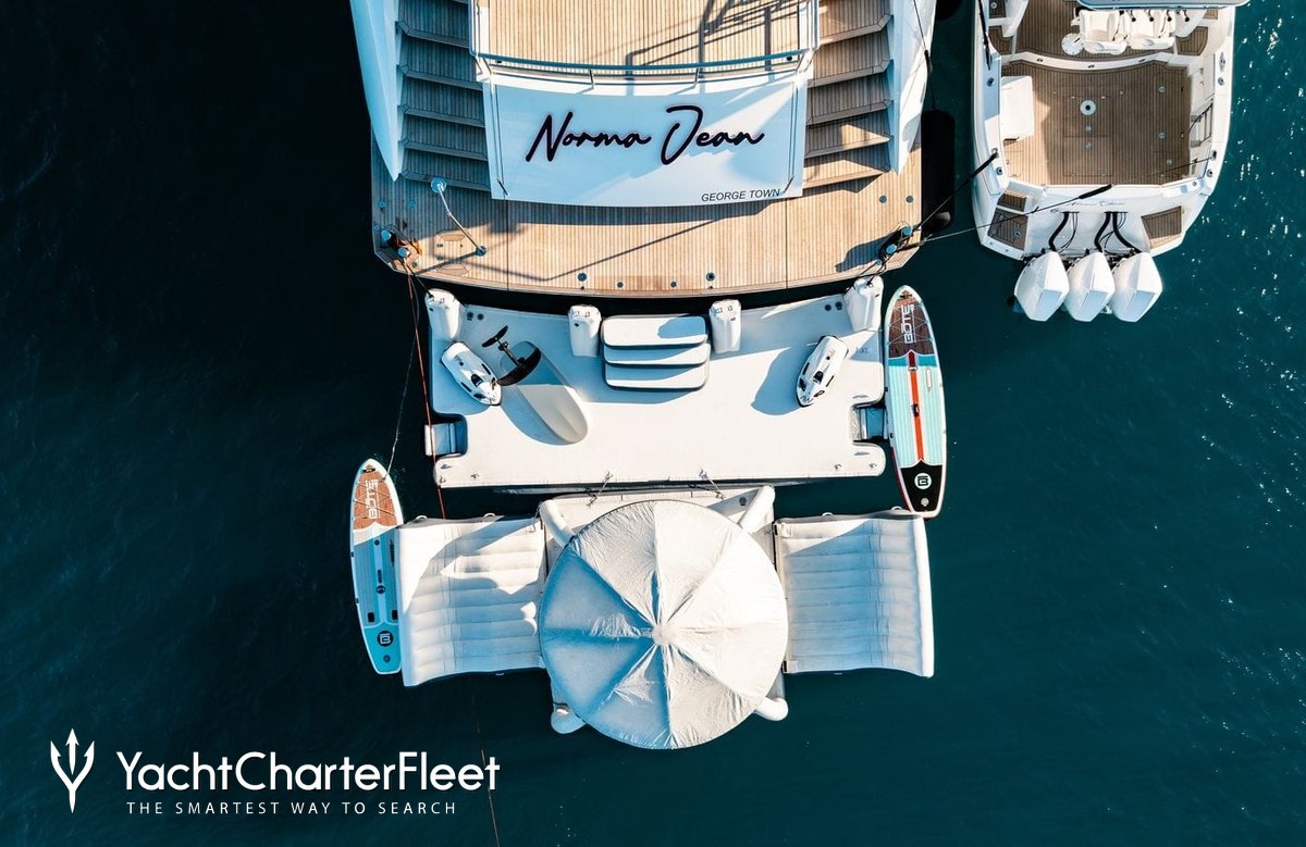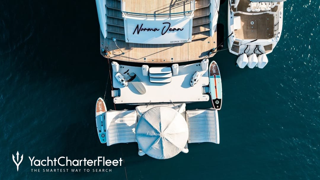 Impressive open yacht Norma Jean is custom-built for socialising and relaxing, offering a stylish haven away from the crowds as you soak up the rays on her array of sumptuous sunpads and lounges. Water lovers will also relish her swim platform, which provides the perfect base for watersports and refreshing dips in the sea.