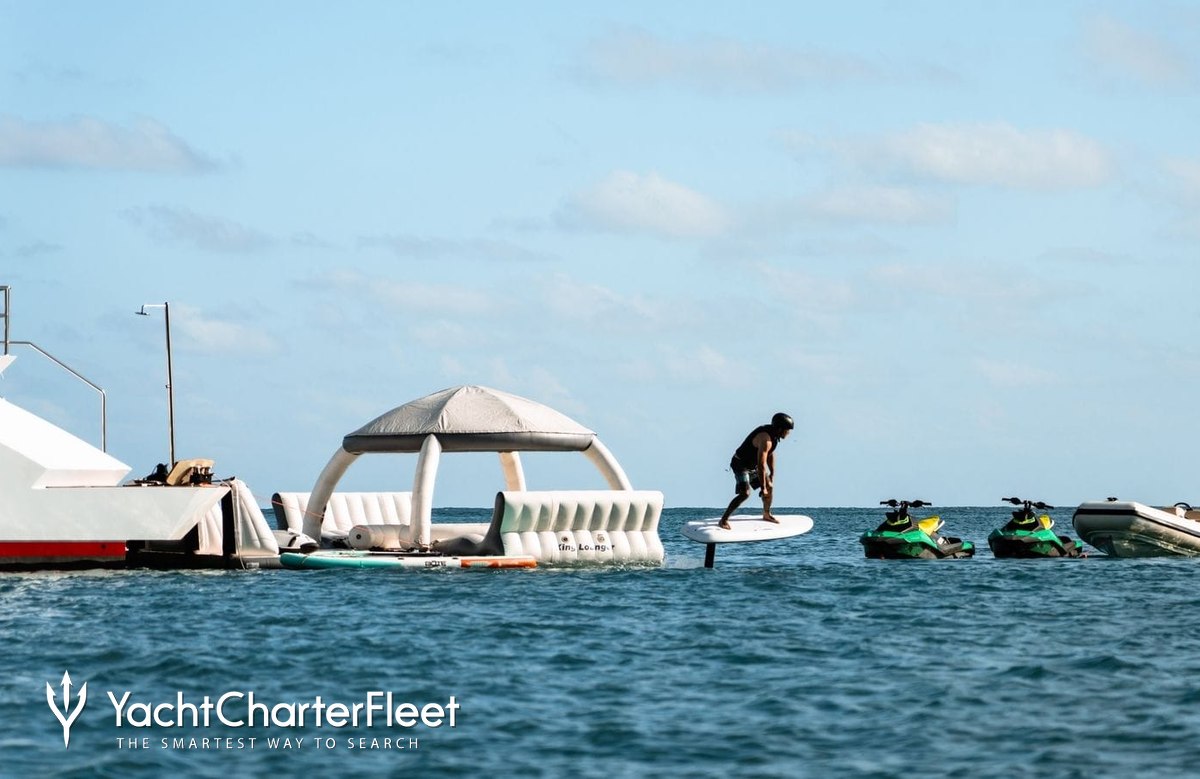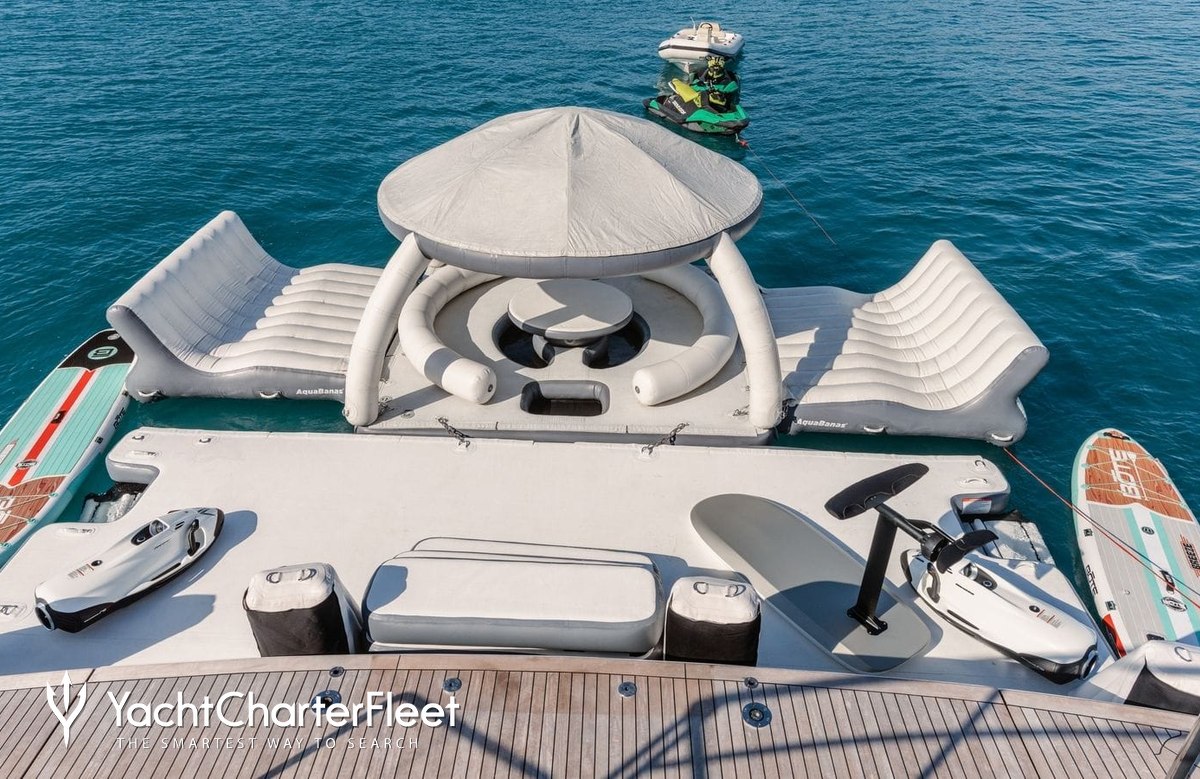 Onboard Norma Jean has a range of toys and accessories to keep you and your guests entertained on the water throughout your stay. Take to the sea on the Jet Skis offering you power and control on the water. Also there are two F5 SEABOBs providing agile cruising and diving. In addition there are wakeboards so guests can show off at speed. If that isn't enough Norma Jean also features fishing equipment, inflatable water toys and paddleboards. When it comes to Tenders, Norma Jean has you covered - with two tenders, including a 11.28m/37' Sunseeker Chase Tender.