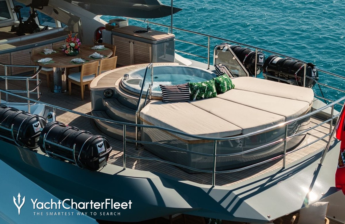 A charter on Norma Jean is comfortable and convenient thanks to the provided amenities, notably a deck jacuzzi, perfect to enjoy the scenery with your favourite drink in hand.