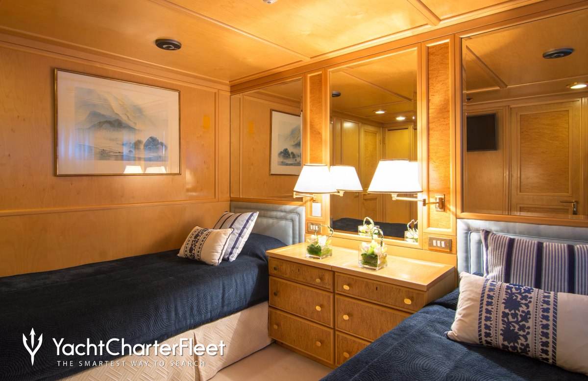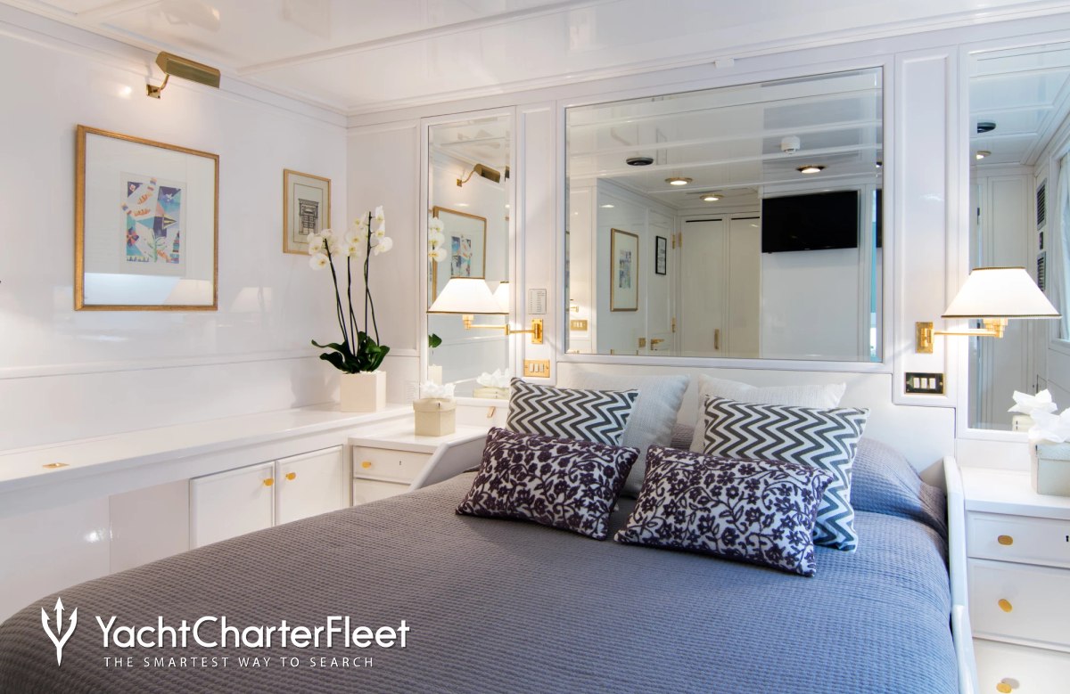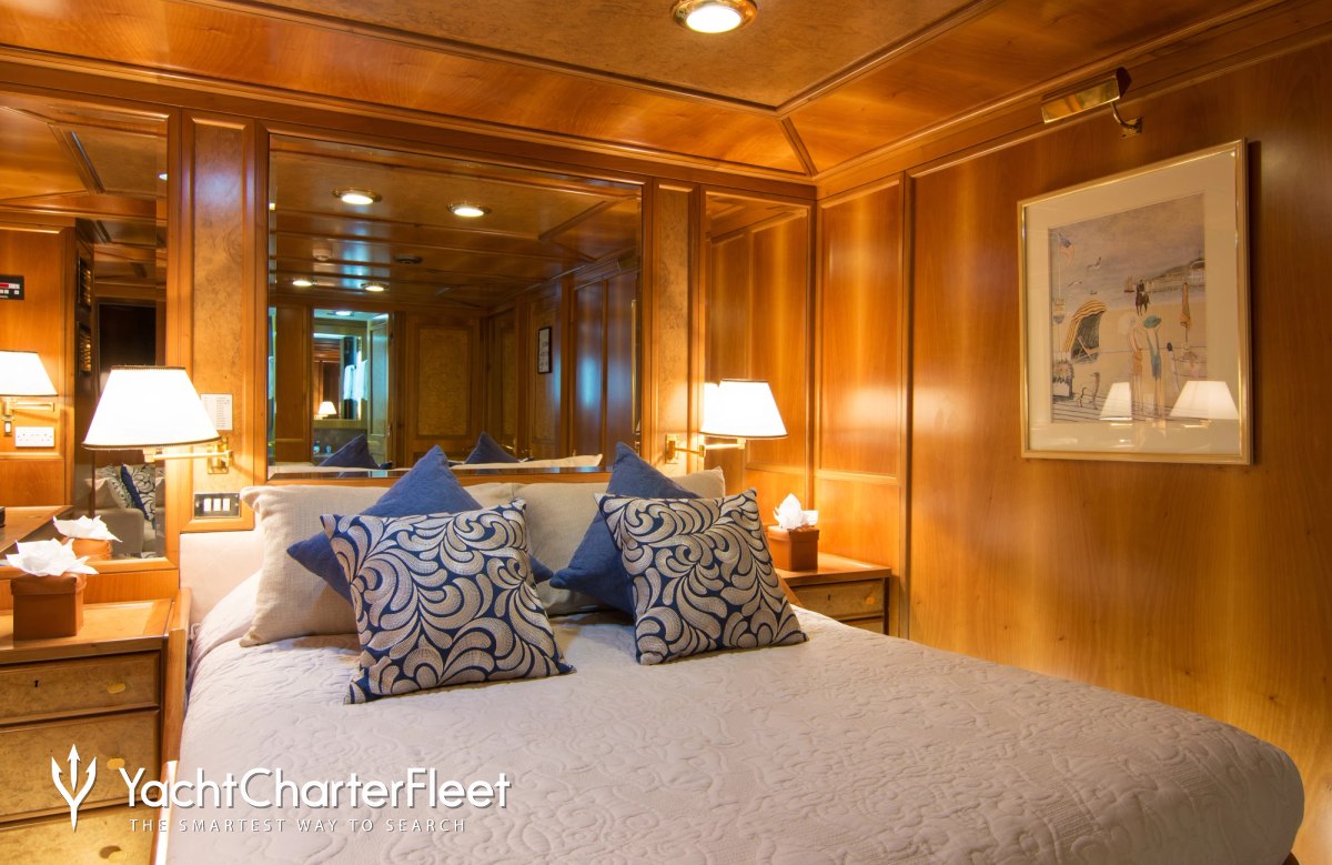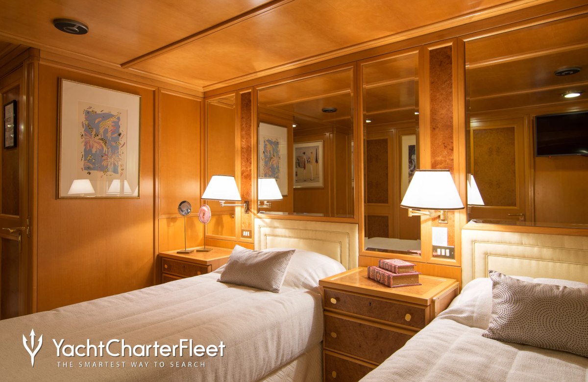 Built in 1985, O'Natalina offers guest accommodation for up to 12 guests in 7 suites comprising a master suite, two VIP cabins, two double cabins and two cabins that can operate as twins or doubles. The bed configuration includes 2 king, 3 doubles and 4 singles. She is also capable of carrying up to 11 crew onboard to ensure a relaxed luxury yacht charter experience.