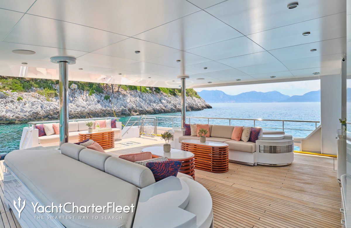 Whatever your activities on your charter, you'll find some impressive features are seamlessly integrated to help you such as satellite communications, keeping you connected on any voyage. Whether you want to work, use social media or stream movies on board this yacht, you can with Wi-Fi connectivity and in addition guests will experience complete comfort while chartering thanks to air conditioning.