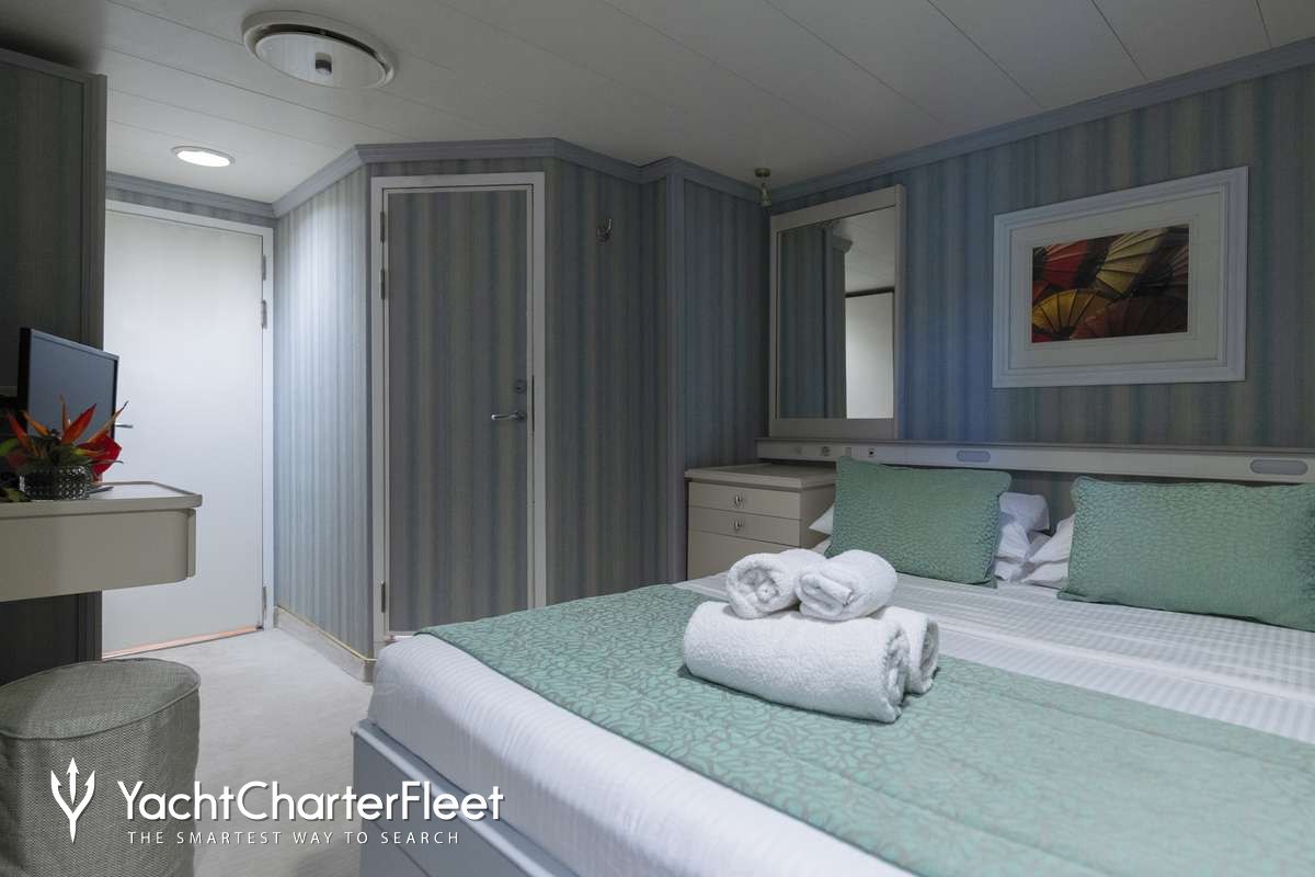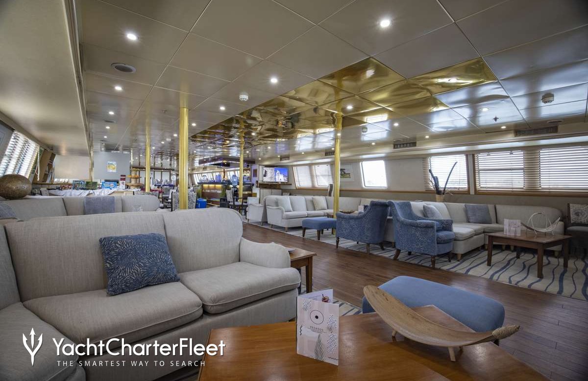 Pegasos is notable for her twenty-one cabin layout, offering great flexibility for a charter yacht of this size. She offers guest accommodation for up to 44 guests with a layout comprising thirteen double cabins and eight twin cabins.