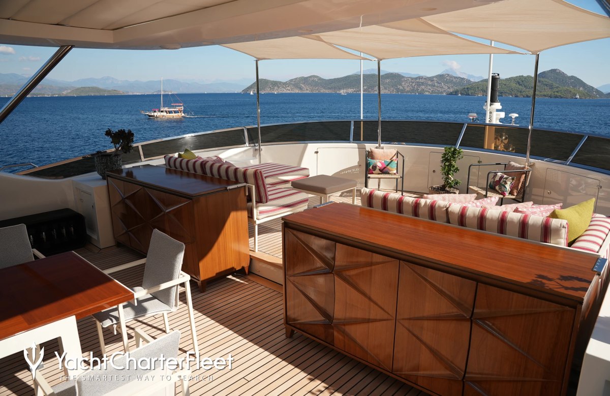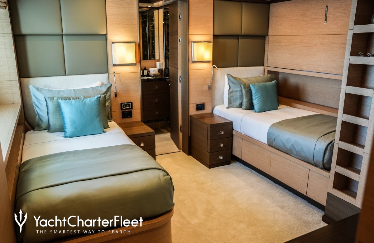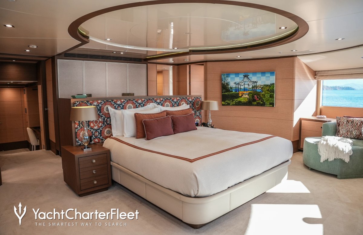 Families will particularly love Latiko thanks to her child-friendly setup. Built in 2014, She offers guest accommodation for up to 11 guests with a layout comprising a master suite, two VIP cabins and two twin cabins. There are 7 beds in total, including 1 king, 3 queen, 1 double, 2 singles and 1 pullman. She is also capable of carrying up to 9 crew onboard to ensure a relaxed luxury yacht charter experience.
