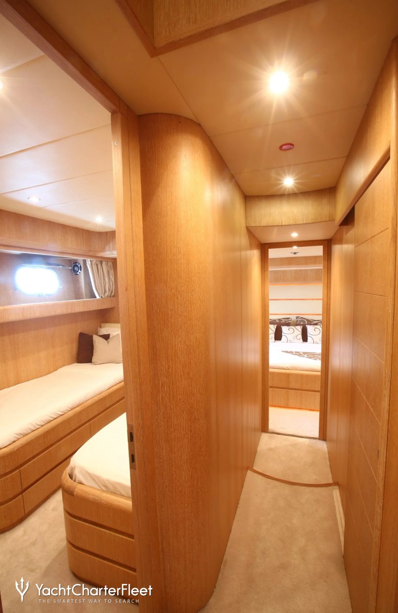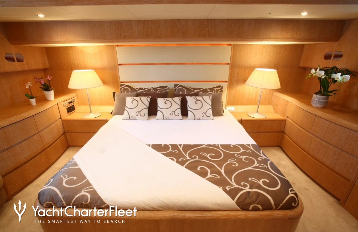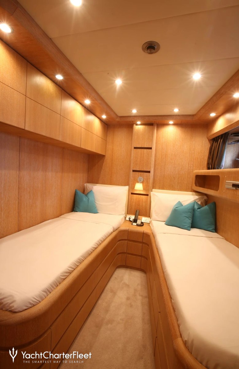Families will particularly love Yakos thanks to her child-friendly setup. Built in 2007, She offers guest accommodation for up to 10 guests with a layout comprising a master suite, one VIP cabin and two twin cabins. There are 5 beds in total, including 2 doubles, 2 singles and 1 pullman. Additionally, there is a staff cabin on board which can accommodate up to 2 members of the owners staff and security team. She is also capable of carrying up to 2 crew onboard to ensure a relaxed luxury yacht charter experience.