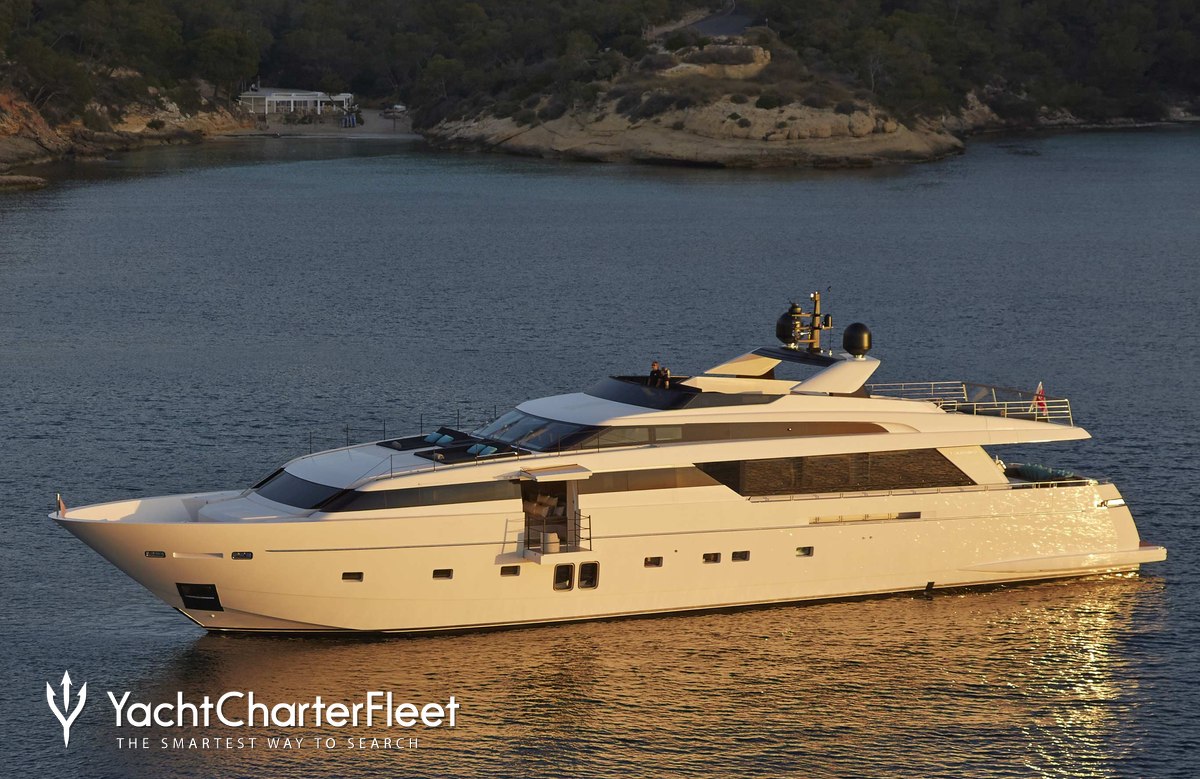 The 36.5m/119'9" 'Riana II' motor yacht built by the Italian shipyard Sanlorenzo is available for charter for up to 10 guests in 5 cabins.