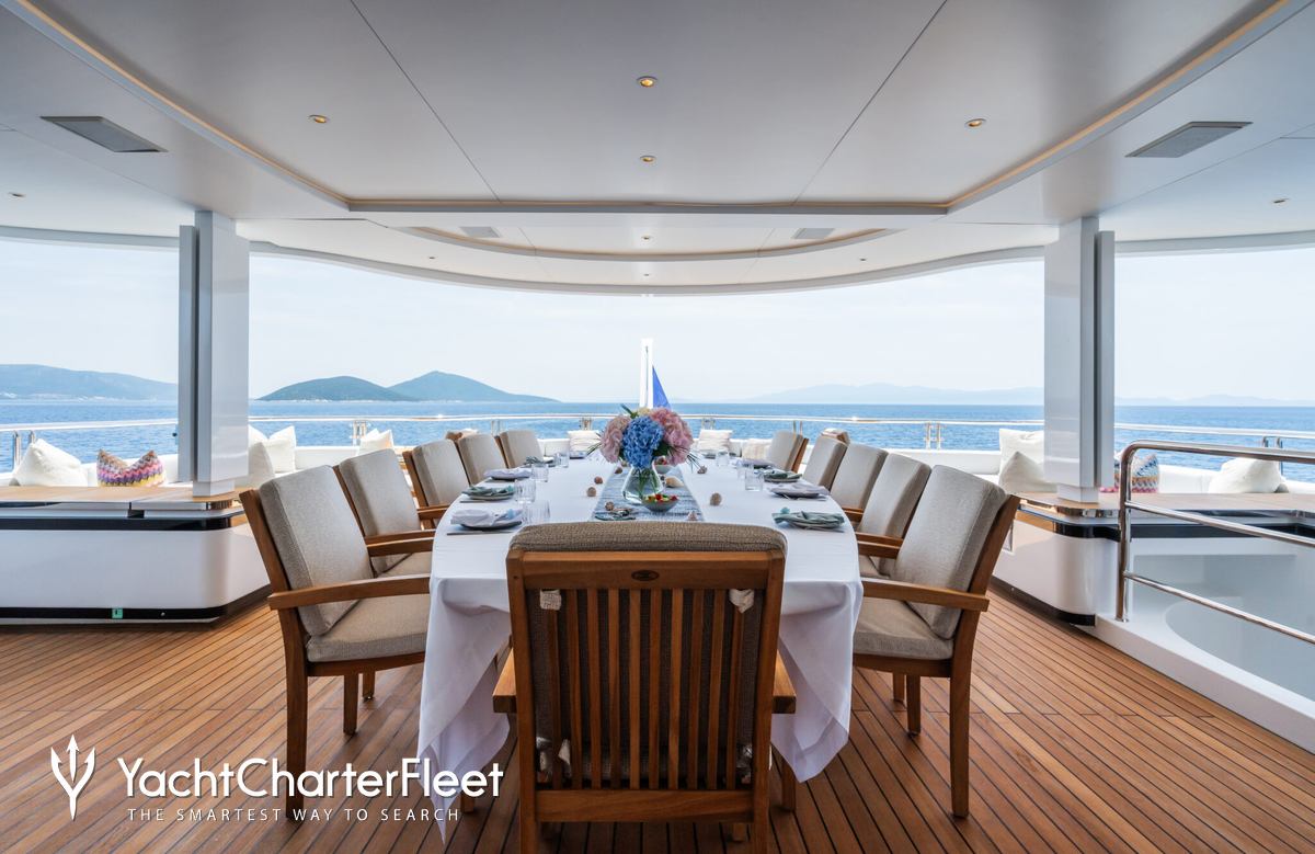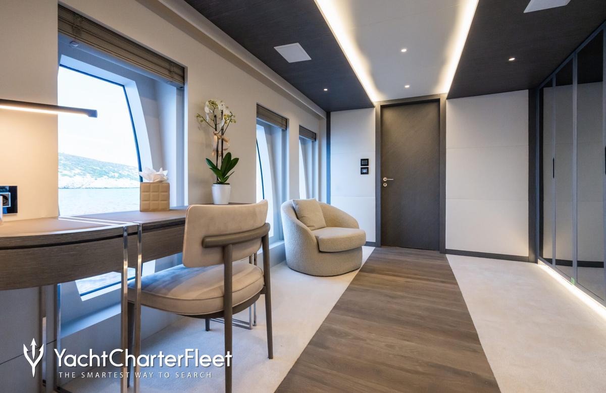 Built in 2023, Fortuna offers guest accommodation for up to 10 guests in 5 suites comprising a master suite, three double cabins and one twin cabin. She is also capable of carrying up to 9 crew onboard to ensure a relaxed luxury yacht charter experience.