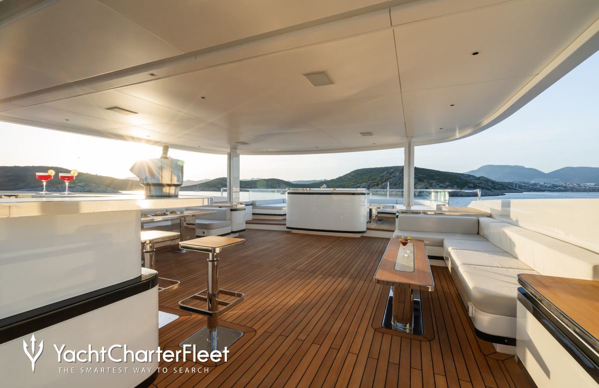 On your charter, you'll find plenty to keep you busy and entertained, particularly a beach club for you to relax on the edge of the water. A gym with all the latest equipment is available for a good work out or elsewhere, retreat to the deck jacuzzi and soak up the scenery.