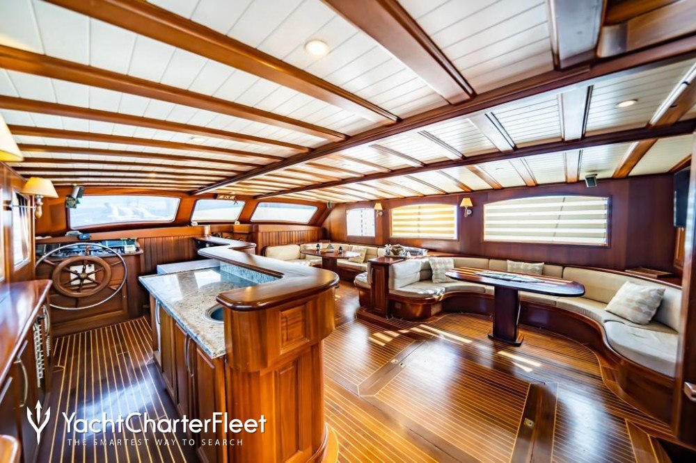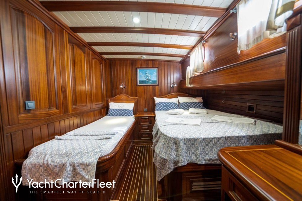 Built in 2006, Kaptan Yilmaz 3 offers guest accommodation for up to 12 guests in 6 suites comprising a master suite, one VIP cabin and four double cabins. She is also capable of carrying up to 5 crew onboard to ensure a relaxed luxury yacht charter experience.