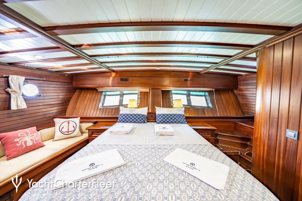 The 31.08m/102' gulet yacht 'Kaptan Yilmaz 3' by Bodrum Shipyard offers flexible accommodation for up to 12 guests in 6 cabins.